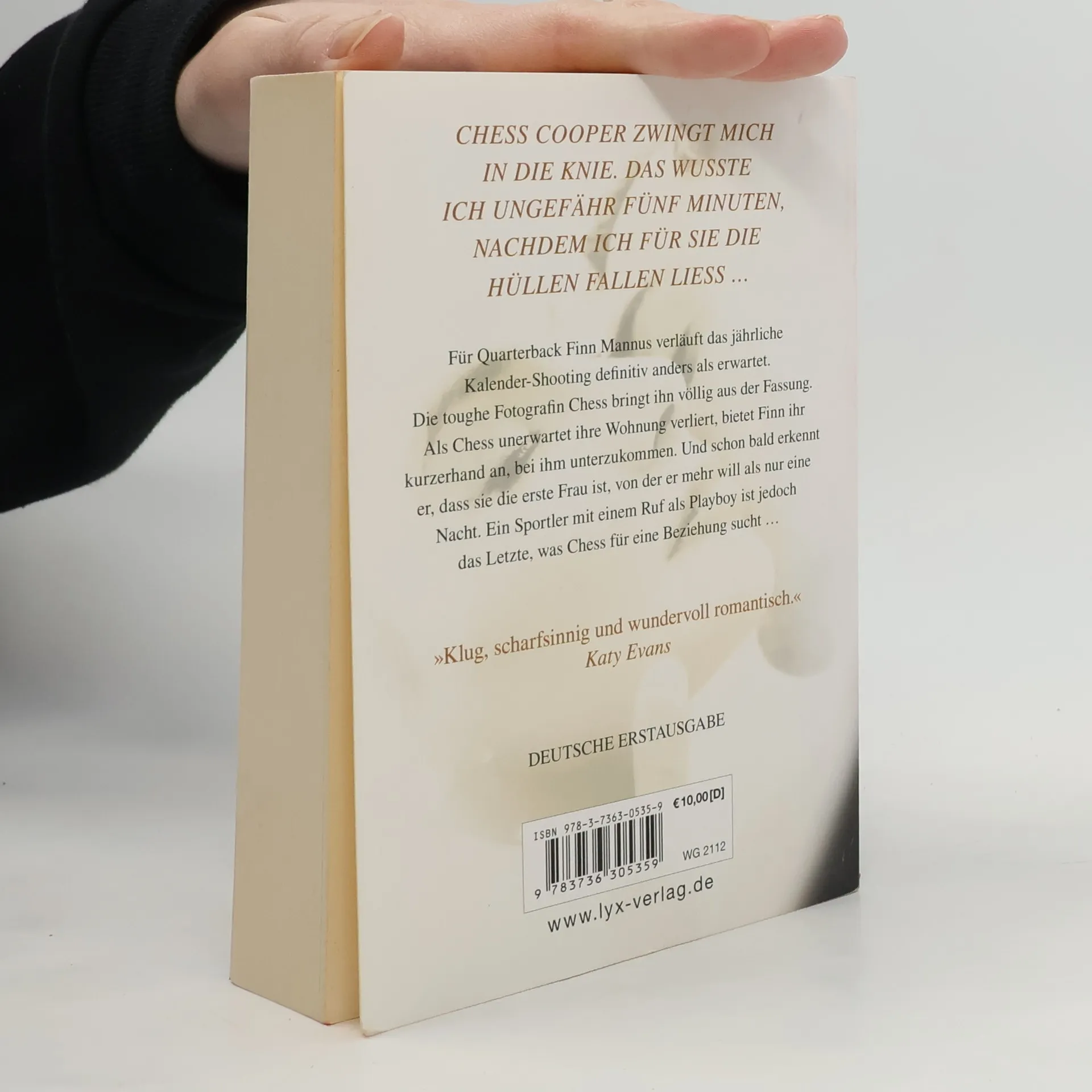 Was soll ich über Chess Cooper sagen? Die Frau zwingt mich in die Knie. Das wusste ich ungefähr fünf Minuten, nachdem ich für sie die Hüllen fallen ließ ... Für Quarterback Finn Mannus läuft das jährliche Kalender-Shooting definitiv anders als erwartet. Die toughe Fotografin Chess bringt ihn völlig aus der Fassung. Als Chess unerwartet ihre Wohnung verliert, bietet Finn ihr kurzerhand an, bei ihm unterzukommen. Und schon bald erkennt er, dass sie die erste Frau ist, von der er mehr will als nur eine Nacht. Ein Sportler mit einem Ruf als Playboy ist jedoch das Letzte, was Chess für eine Beziehung sucht ... „Klug, scharfsinnig und wundervoll romantisch.“ Katy Evans, New York Times