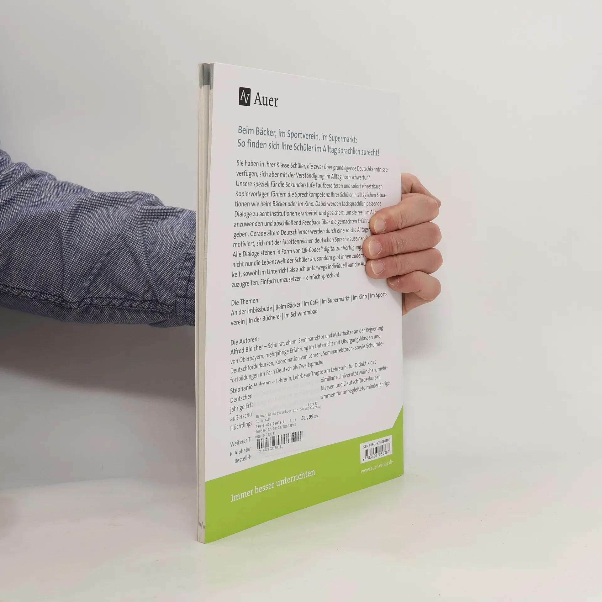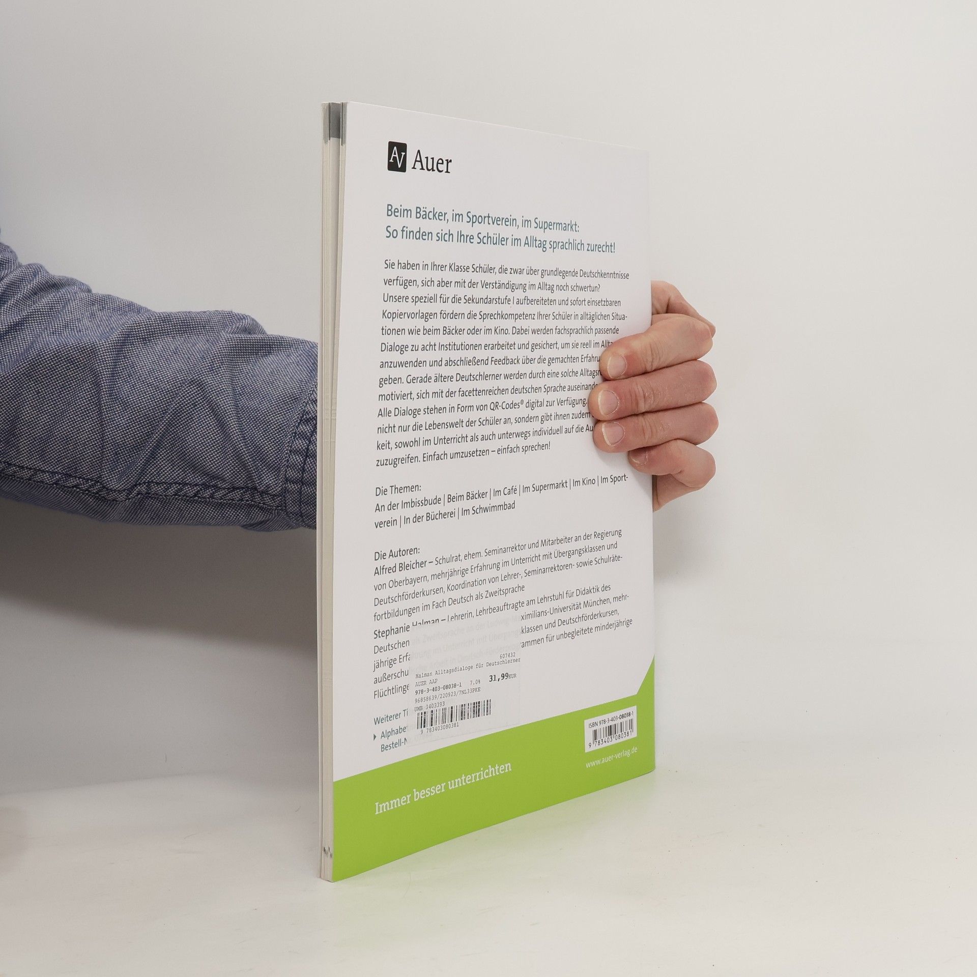 Sprechen im Alltag lernen Für Schüler mit geringen Deutschkenntnissen stellen selbst die einfachsten Alltagssituationen häufig eine große Hürde dar. Dank der Unterrichtsmaterialien dieses Bandes helfen Sie Ihren Schülern, diese Hürden der Alltagssprache erfolgreich zu überwinden. So gelingt es den Schülern, sich zielgerichtet im Alltag zu verständigen. Deutsch als Fremdsprache im Alltag Die Unterrichtsmaterialien für Deutsch als Fremdsprache/Deutsch als Zweitsprache sorgen dafür, dass die Schülerinnen und Schüler einen grundlegenden Wortschatz erwerben und sich typische Satzstrukturen schnell und nachhaltig einprägen. Dabei helfen wiederkehrende Aufgabenformate. Leicht im Deutschunterricht umsetzbar Die Arbeitsblätter als Kopiervorlagen sind speziell für den Einsatz in der Sekundarstufe I ausgelegt. Sie eignen sich für den regulären Deutschunterricht, um dort Schüler mit sprachlichen Defiziten zu fördern, aber auch für Vorbereitungs- und Übungsklassen für Deutsch als Fremdsprache.