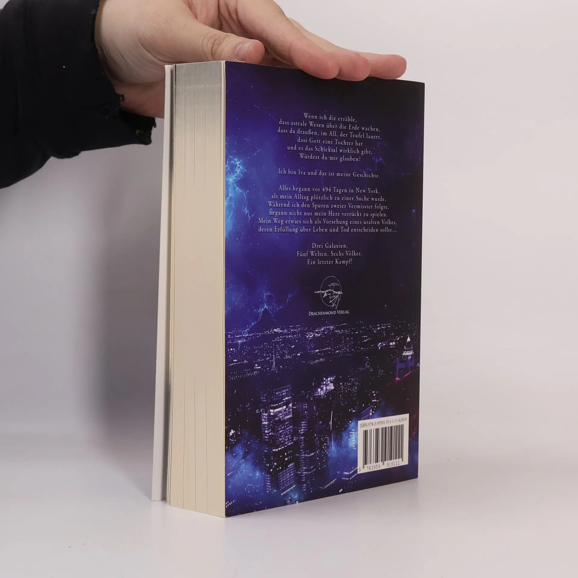 Drei Galaxien. Fünf Welten. Sechs Völker. Ein letzter Kampf! Wenn ich dir erzähle, dass astrale Wesen über die Erde wachen, dass da draußen, im All, der Teufel lauert, dass Gott eine Tochter hat und es das Schicksal wirklich gibt. Würdest du mir glauben? Ich bin Iva und das ist meine Geschichte. Alles begann vor 494 Tagen in New York, als mein Alltag plötzlich zu einer Suche wurde. Während ich den Spuren zweier Vermisster folgte, begann nicht nur mein Herz verrückt zu spielen. Mein Weg erwies sich als Vorsehung eines uralten Volkes, deren Erfüllung über Leben und Tod entscheiden sollte …