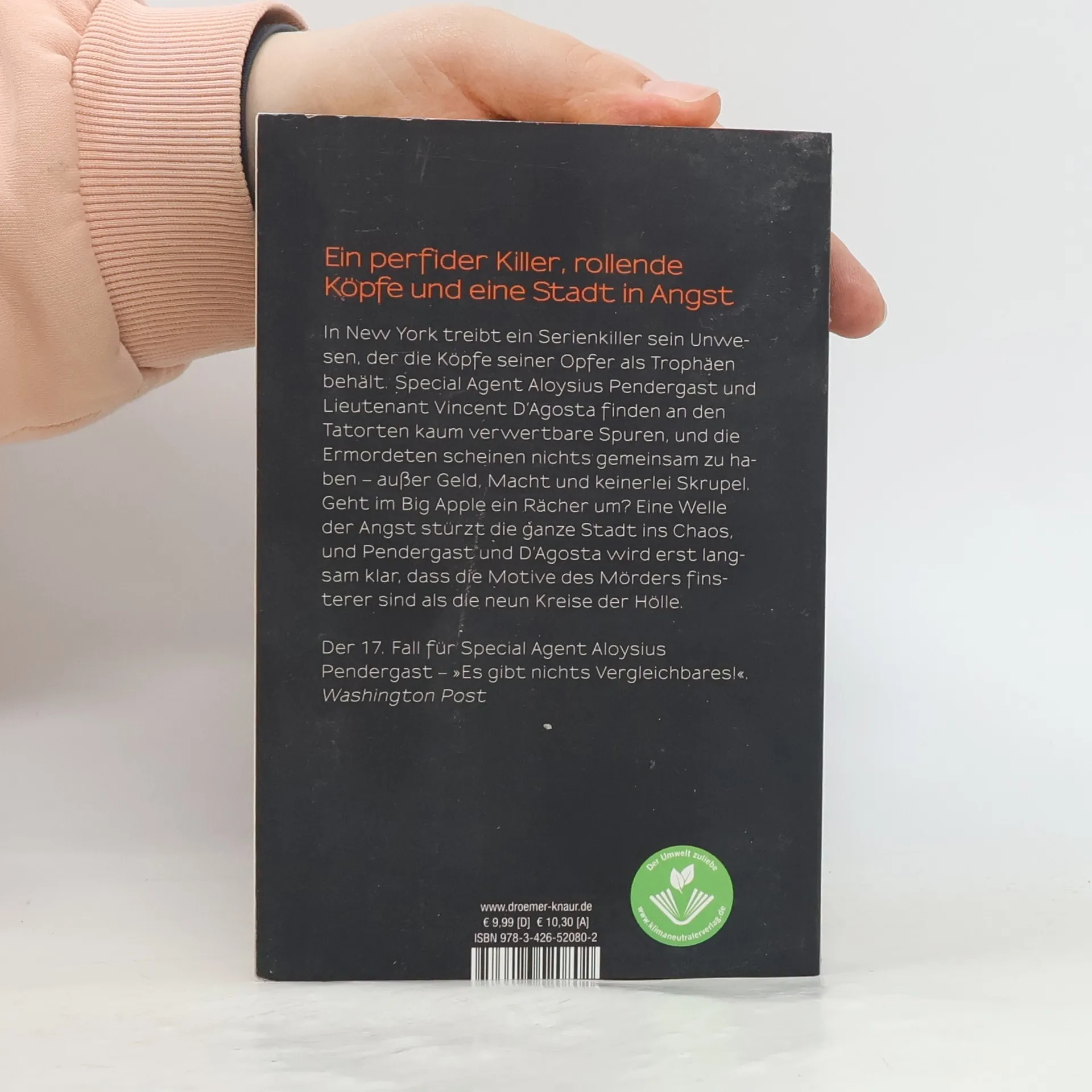 Nur nicht den Kopf verlieren, heißt es für Special Agent Aloysius Pendergast und Lieutenant Vincent D'Agosta: In New York treibt ein Serienkiller sein Unwesen, der die Köpfe seiner Opfer als Trophäen behält. Doch er hinterlässt kaum verwertbare Spuren, und die Ermordeten scheinen nichts gemeinsam zu haben - außer Geld, Macht und keinerlei Skrupel. Geht im Big Apple ein Rächer um? Eine Welle der Hysterie stürzt die ganze Stadt ins Chaos. Mittendrin Pendergast und D'Agosta, die kaum einen Schritt weiterkommen und nicht ahnen, dass die Motive des Killers finsterer sind als die neun Kreise der Hölle.