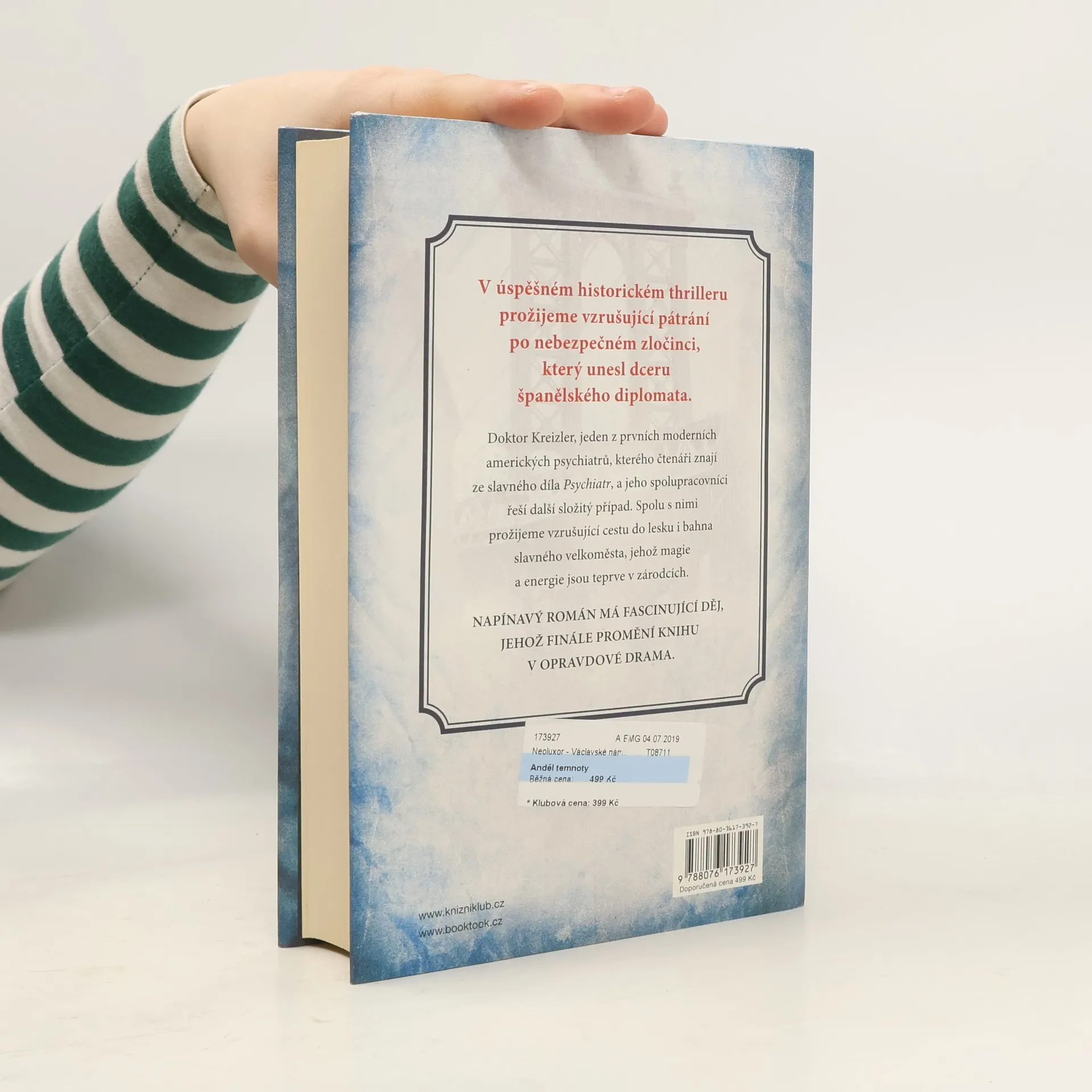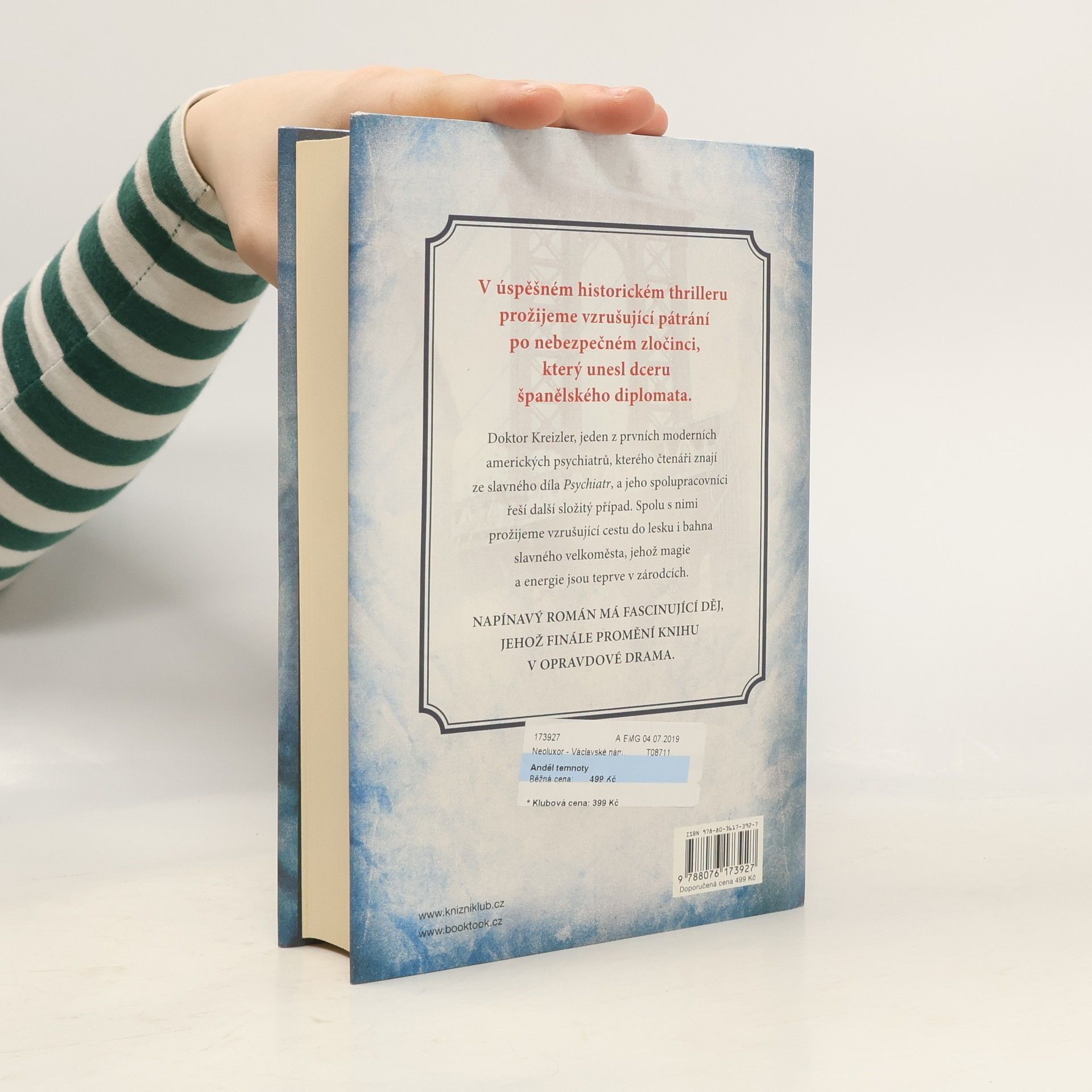 Píše se rok 1897 a z New Yorku se za rok stane druhé největší město světa. Dolní Manhattan má nejrizikovější chudinskou populaci. O tom dobře ví Laszlo Kreizler, jeden z prvních lékařů na světě, který se věnuje soudní psychiatrii, a hrdina románu, jehož si autor přenesl ze svého velmi úspěšného historického thrilleru Psychiatr. V napínavém příběhu se opět setkáváme s ním i jeho spolupracovníky a jejich napínavé pátrání se rozvine, když kdosi unese dceru španělského diplomata. Stopy míří k jisté zdravotní sestře a z ní se vyklube členka jednoho z místních gangů, podezřelá z vraždy vlastních dětí.