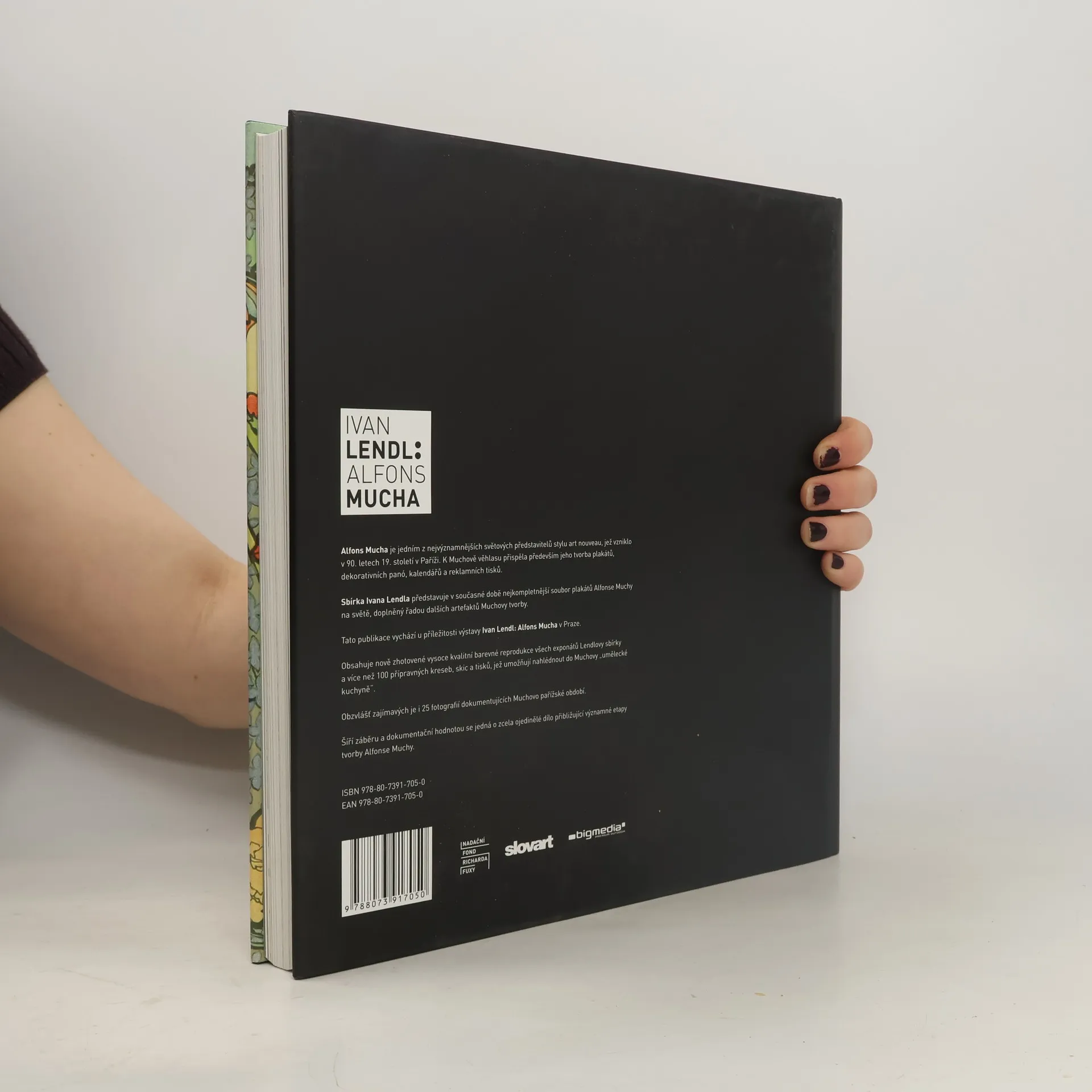 Reprezentativní publikace je i katalogem výstavy plakátů Alfonse Muchy z unikátní sbírky Ivana Lendla, která čítá na 120 plakátů. Kromě plakátů, kalendářů a dekorativních panó je doplněna o 50 reprodukcí přípravných skic k některým významným plakátům a unikátní fotografie. Celkem obsahuje 150 reprodukcí plakátů, kalendářů a dekorativních panó.