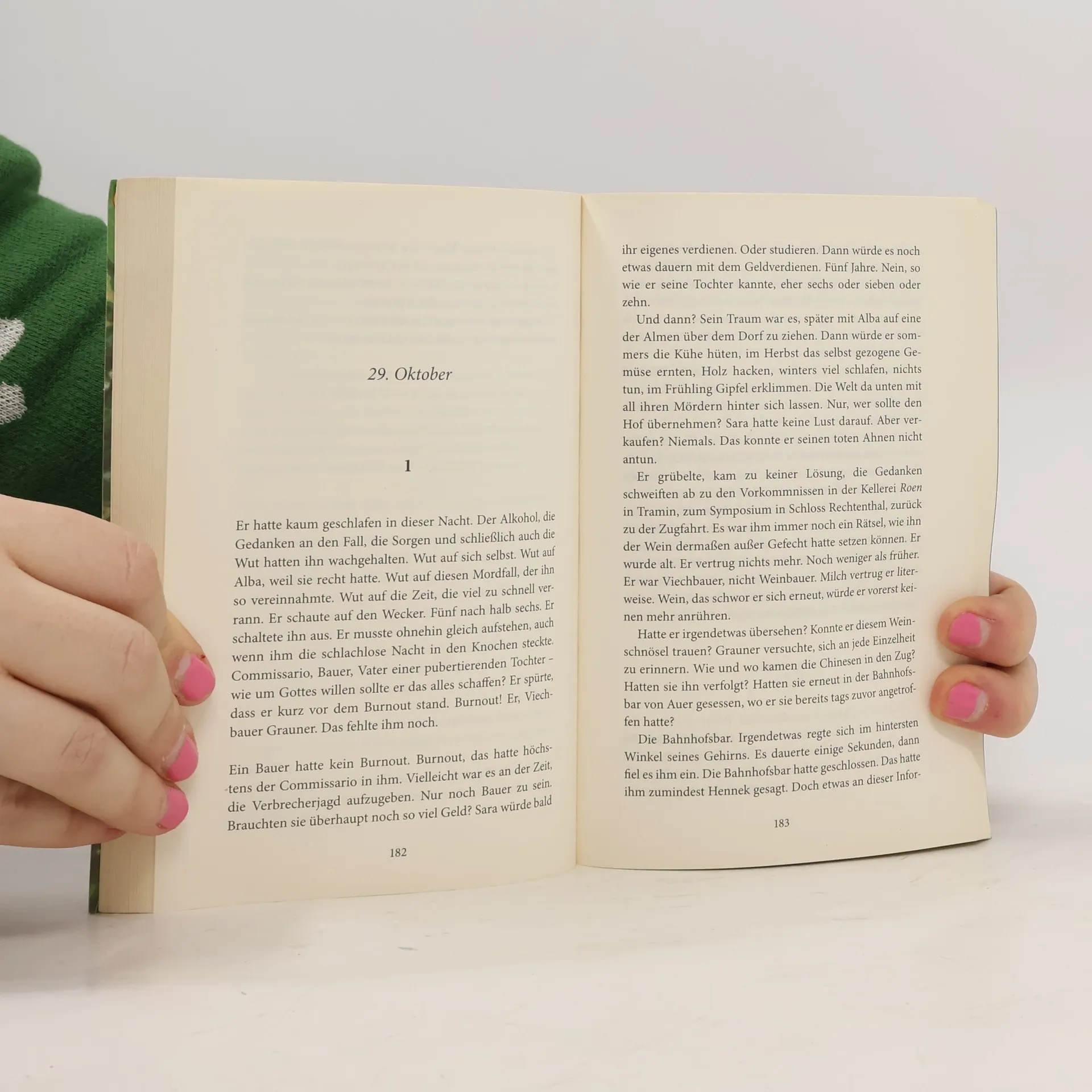 Gefangen im Labyrinth der Südtiroler Apfelbaumplantagen. Im Spätherbst, als der Nebel zwischen den zahllosen Apfelbäumen hängt, werden im Unterland die Leichen zweier Frauen gefunden. Da unten, in der breiten Talsenke zwischen den Weinhängen, hat kein Bürgermeister und kein Pfarrer das Sagen. Da unten regieren die Bauern. Schnell präsentieren diese Commissario Grauner und seinem neapolitanischen Kollegen Saltapepe den Mörder: Der Zwölfer-Heinrich soll es gewesen sein. Doch ein rätselhafter Fetzen Papier lässt die Ermittler zweifeln. Während Grauner sich unter den Obst- und Weinbauern umhört und unversehens auf einem Symposium für Gewürztraminer landet, vernimmt Saltapepe nachts die Prostituierten an der Staatsstraße. Er bemerkt die Schatten nicht, die sich zwischen den Apfelbäumen an ihn heranschleichen …In seinem vierten Fall bekommt es der beliebte Commissario und Viechbauer Johann Grauner mit finsteren Mächten zu tun, die weit über die Grenzen Südtirols hinaus für Unheil sorgen.
