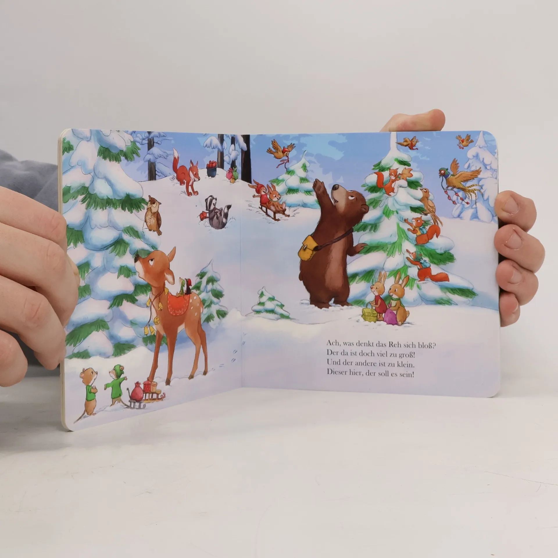 Alle Jahre wieder treffen sich die Waldtiere, um gemeinsam den schönsten Baum im Wald weihnachtlich zu schmücken. Dazu gibt es Zimtpunsch und Plätzchen. Das lockt sogar den Weihnachtsmann an. Hat er wohl etwas mitgebracht? Eine erste gereimte Weihnachtsgeschichte für die Kleinsten.