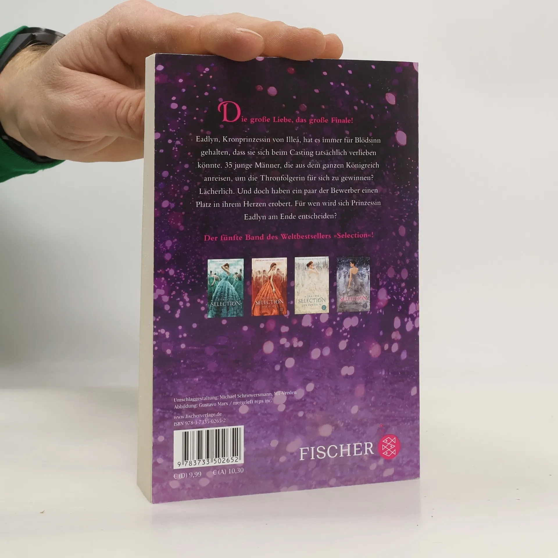 Die große Liebe, das große Finale – darauf haben alle »Selection«-Fans gewartet! Als das Casting begann, war Eadlyn wild entschlossen, sich nicht zu verlieben und keinen der Bewerber an sich heranzulassen. Doch nun muss sie sich eingestehen, dass einige von ihnen doch Eindruck bei ihr hinterlassen haben: Henri, der charmante Lockenkopf, und sein bester Freund Erik. Der aufmerksame und rücksichtsvolle Hale. Der selbstsichere und attraktive Ean. Und natürlich Kile, Eadlyns Lieblingsfeind aus Sandkastenzeiten, der sie zu ihrem Ärger immer wieder aus der Reserve lockt. Sie alle haben es geschafft, einen Platz in Eadlyns Welt zu erobern. Aber wird es auch jemand in das Herz der Prinzessin schaffen? Der 5. Band des internationalen Weltbestsellers – wunderbar romantisch und ein krönender Abschluss!