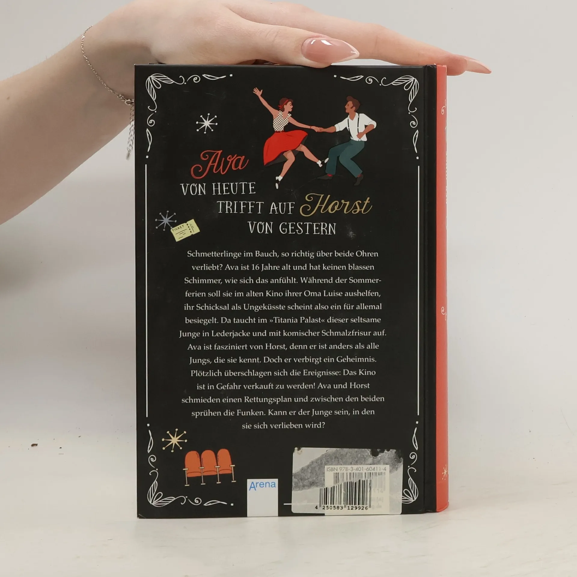Schmetterlinge im Bauch, so richtig über beide Ohren verliebt? Ava ist 16 Jahre alt und hat keinen blassen Schimmer, wie sich das anfühlt. Während der Sommerferien soll sie im alten Kino ihrer Oma Luise aushelfen, ihr Schicksal als Ungeküsste scheint also ein für allemal besiegelt. Da taucht im „Titania Palast“ dieser seltsame Junge in Lederjacke und mit komischer Schmalzfrisur auf. Ava ist fasziniert von Horst, denn er ist anders als alle Jungs, die sie kennt. Doch er verbirgt ein Geheimnis. Plötzlich überschlagen sich die Ereignisse: Das Kino ist in Gefahr verkauft zu werden! Ava und Horst schmieden einen Rettungsplan und zwischen den beiden sprühen die Funken. Kann er der Junge sein, in den sie sich verlieben wird?