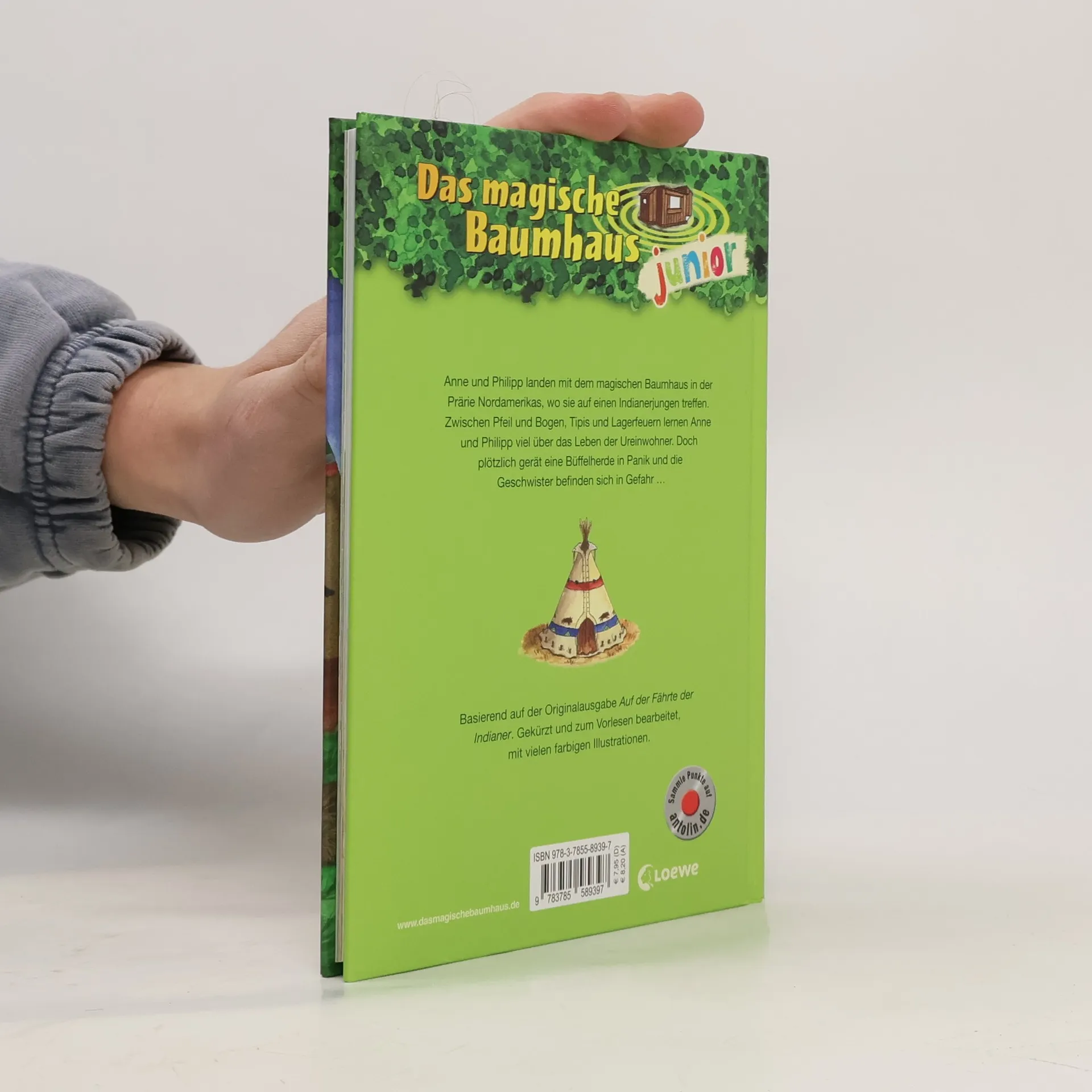 Das Buch ist bei deiner Buchhandlung vor Ort und bei vielen Online-Buchshops erhältlich! + Bücher, die Kinder gerne lesen wollen + Beliebte Themen: Abenteuer, Tiere, fremde Länder und Indianer + Hochwertiges Hardcover + Mit vielen Illustrationen + Bereits über 10 Millionen verkaufte Bücher der Baumhaus-Reihe + Ausgewogenes Text-Bild-Verhältnis + Große Schrift + Kurze Kapitel + Anne und Philipp landen mit dem magischen Baumhaus in der Prärie Nordamerikas, wo sie auf einen Indianerjungen treffen. Zwischen Tipis, Pfeil und Bogen und Lagerfeuern lernen Anne und Philipp viel über das Leben der Ureinwohner. Doch plötzlich gerät eine Büffelherde in Panik und die Geschwister befinden sich in Gefahr ... Die beliebte Kinderbuch-Reihe von Bestsellerautorin Mary Pope Osborne zum Vorlesen und Selberlesen. Die Geschwister Anne und Philipp reisen mit dem magischen Baumhaus durch die Zeit, entdecken ferne Länder und faszinierende Tiere und erleben spannende Abenteuer. Mit vielen bunten Bildern, besonders für Kinder ab 6 Jahren geeignet. Alle Bände der erfolgreichen Reihe sind auch bei Antolin gelistet. Basierend auf der Originalausgabe Das magische Baumhaus - Auf der Fährte der Indianer. Gekürzt und zum Vorlesen bearbeitet, mit vielen farbigen Illustrationen. Mehr Infos zur Reihe und tolle Extras unter: www.MagischesBaumhaus.de