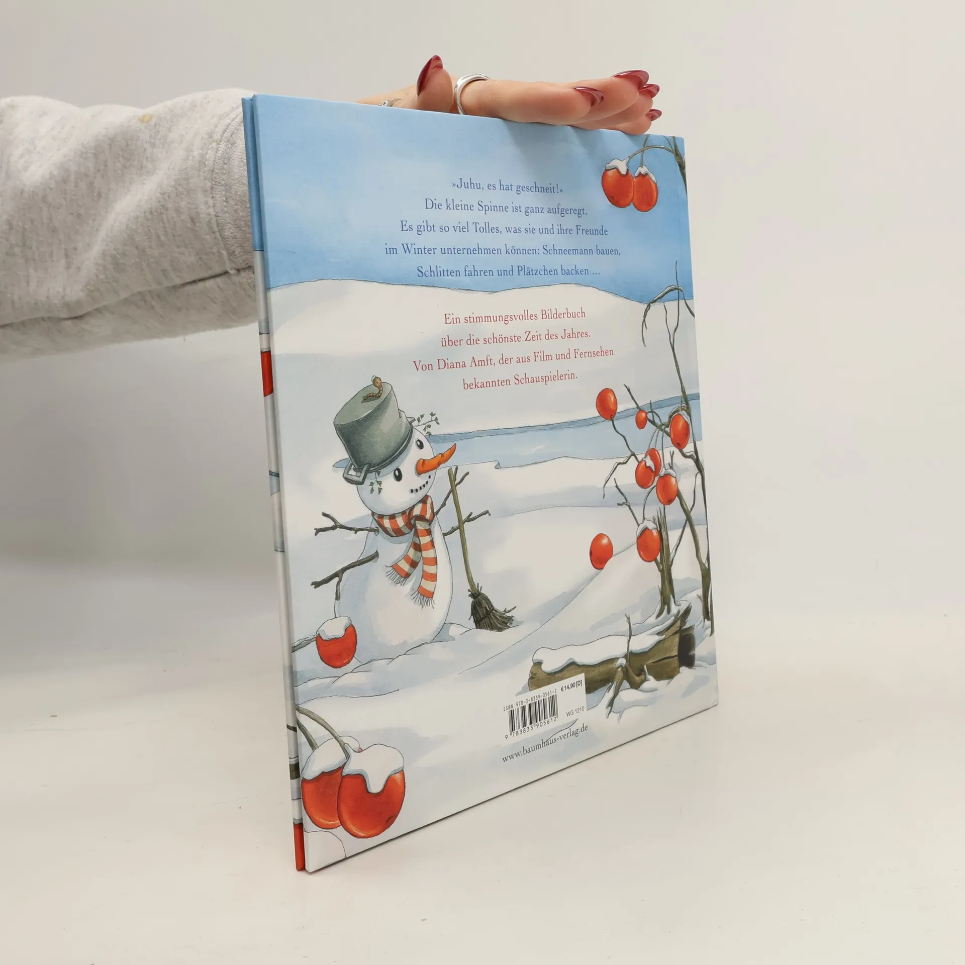 „Juhu, es hat geschneit!“ Die kleine Spinne ist ganz aufgeregt, denn nun beginnt die schönste Zeit des Jahres: Schneemann bauen, Schlittschuh fahren, rodeln, Plätzchen backen und basteln. Es gibt so viel Tolles, was die kleine Spinne und ihre Freunde im Winter unternehmen können ... Ein stimmungsvolles Winterabenteuer von Diana Amft, der aus Film und Fernsehen bekannten Schauspielerin. Mit Oma Ernas Plätzchenrezept als Extra.