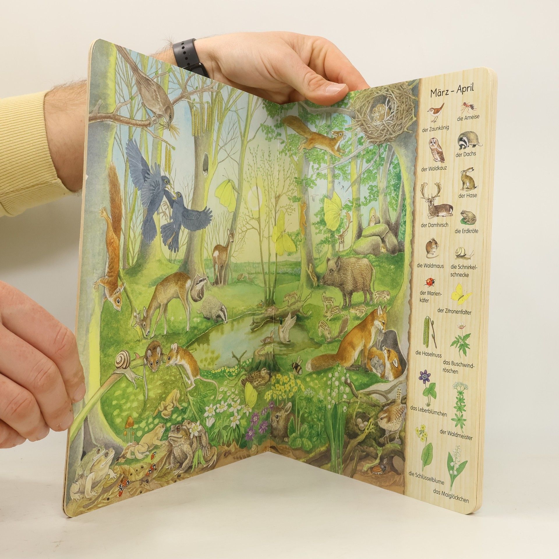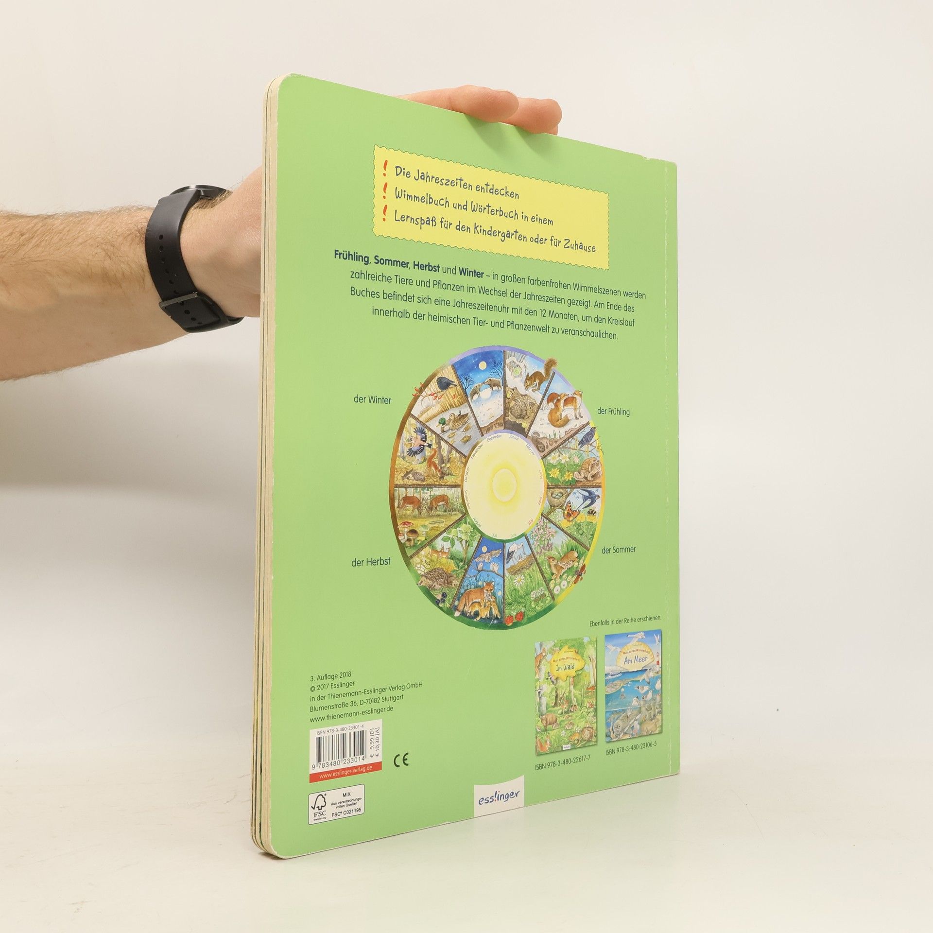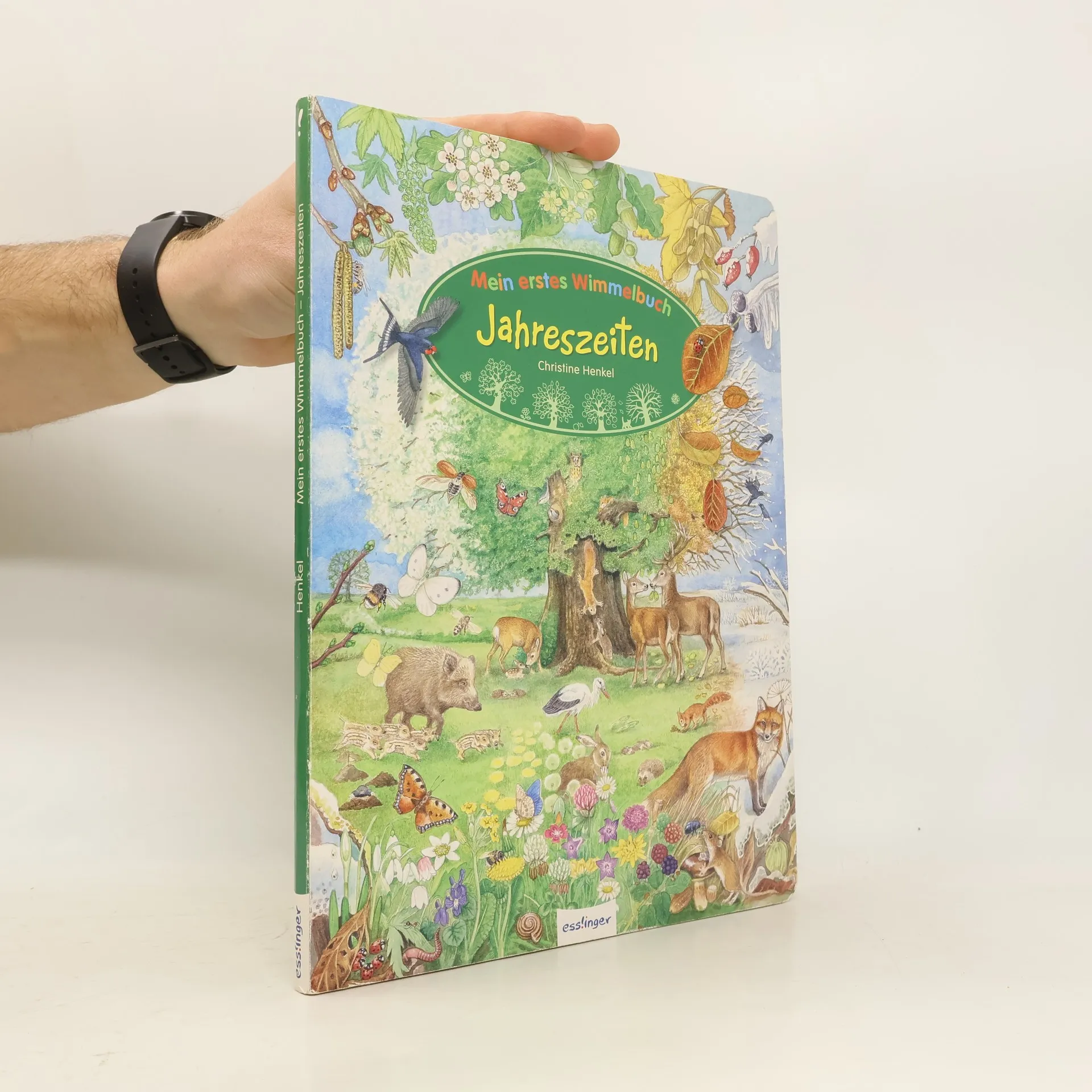 Frühling, Sommer, Herbst und Winter – jede Jahreszeit ist anders und Kinder lieben es, die Natur neu zu entdecken. In großen farbenfrohen Wimmelszenen werden zahlreiche Tiere und Pflanzen im Wechsel der Jahreszeiten gezeigt. Am Ende des Buches befindet sich eine Jahreszeitenuhr mit den 12 Monaten, um den Kreislauf innerhalb der heimischen Tier- und Pflanzenwelt zu veranschaulichen.