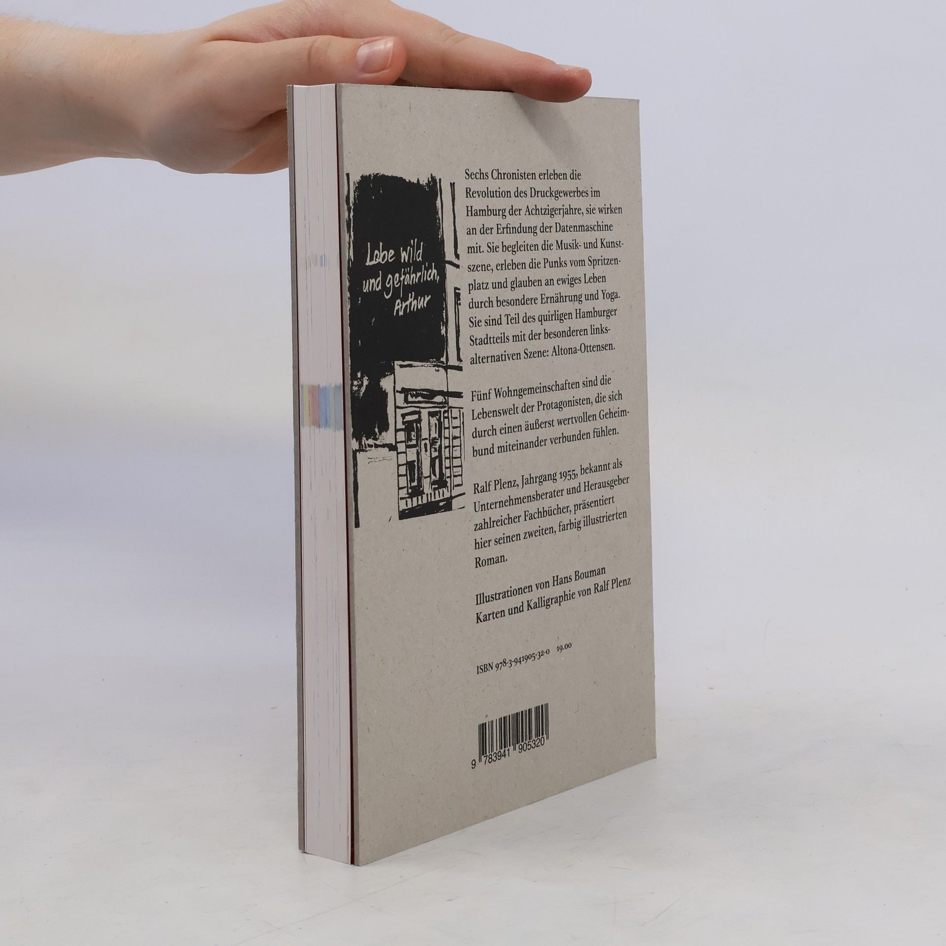 Sechs Chronisten erleben die Revolution des Druckgewerbes im Hamburg der Achtzigerjahre, sie wirken an der Erfindung der Datenmaschine mit. Sie begleiten die Musik- und Kunstszene, erleben die Punks vom Spritzenplatz und glauben an ewiges Leben durch besondere Ernährung und Yoga. Sie sind Teil des quirligen Hamburger Stadtteils mit der besonderen linksalternativen Szene: Altona-Ottensen. Fünf Wohngemeinschaften sind die Lebenswelt der Protagonisten, die sich durch einen äußerst wertvollen Geheimbund miteinander verbunden fühlen. Ralf Plenz, Jahrgang 1955, bekannt als Unternehmensberater und Herausgeber zahlreicher Fachbücher, präsentiert hier seinen zweiten, farbig illustrierten Roman.