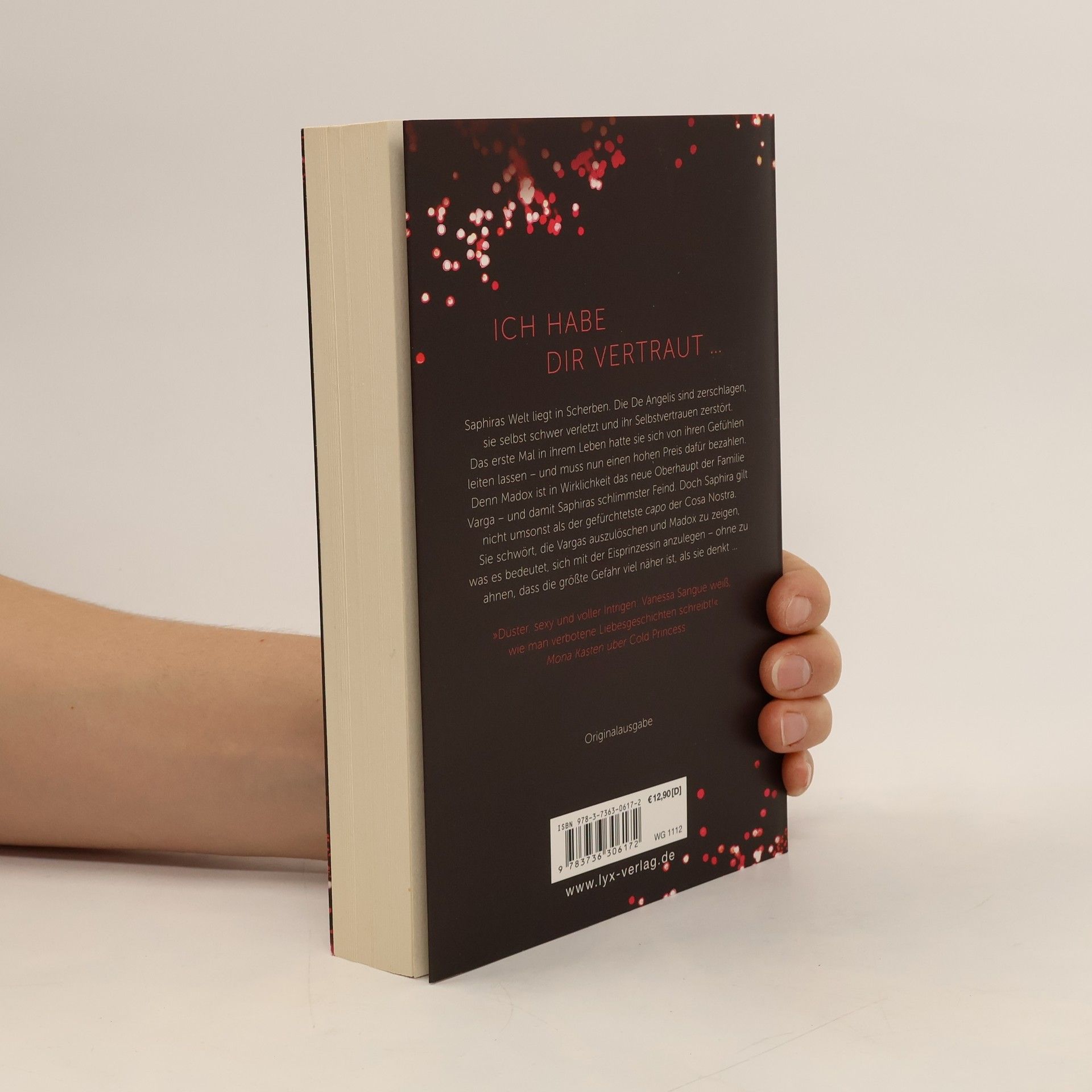 Ich habe dir vertraut ... Saphiras Welt liegt in Scherben. Die De Angelis sind zerschlagen, sie selbst schwer verletzt und ihr Selbstvertrauen zerstört. Das erste Mal in ihrem Leben hatte sie sich von ihren Gefühlen leiten lassen - und muss nun einen hohen Preis dafür bezahlen. Denn Madox ist in Wirklichkeit das neue Oberhaupt der Familie Varga - und damit Saphiras schlimmster Feind. Doch Saphira gilt nicht umsonst als der gefürchtetste capo der Cosa Nostra. Sie schwört, die Vargas auszulöschen und Madox zu zeigen, was es bedeutet, sich mit der Eisprinzessin anzulegen - ohne zu ahnen, dass die größte Gefahr viel näher ist, als sie denkt ... „Düster, sexy und voller Intrigen: Vanessa Sangue weiß, wie man verbotene Liebesgeschichten schreibt!“ Mona Kasten Abschlussband der düsteren Liebesromanreihe von Bestseller-Autorin Vanessa Sangue