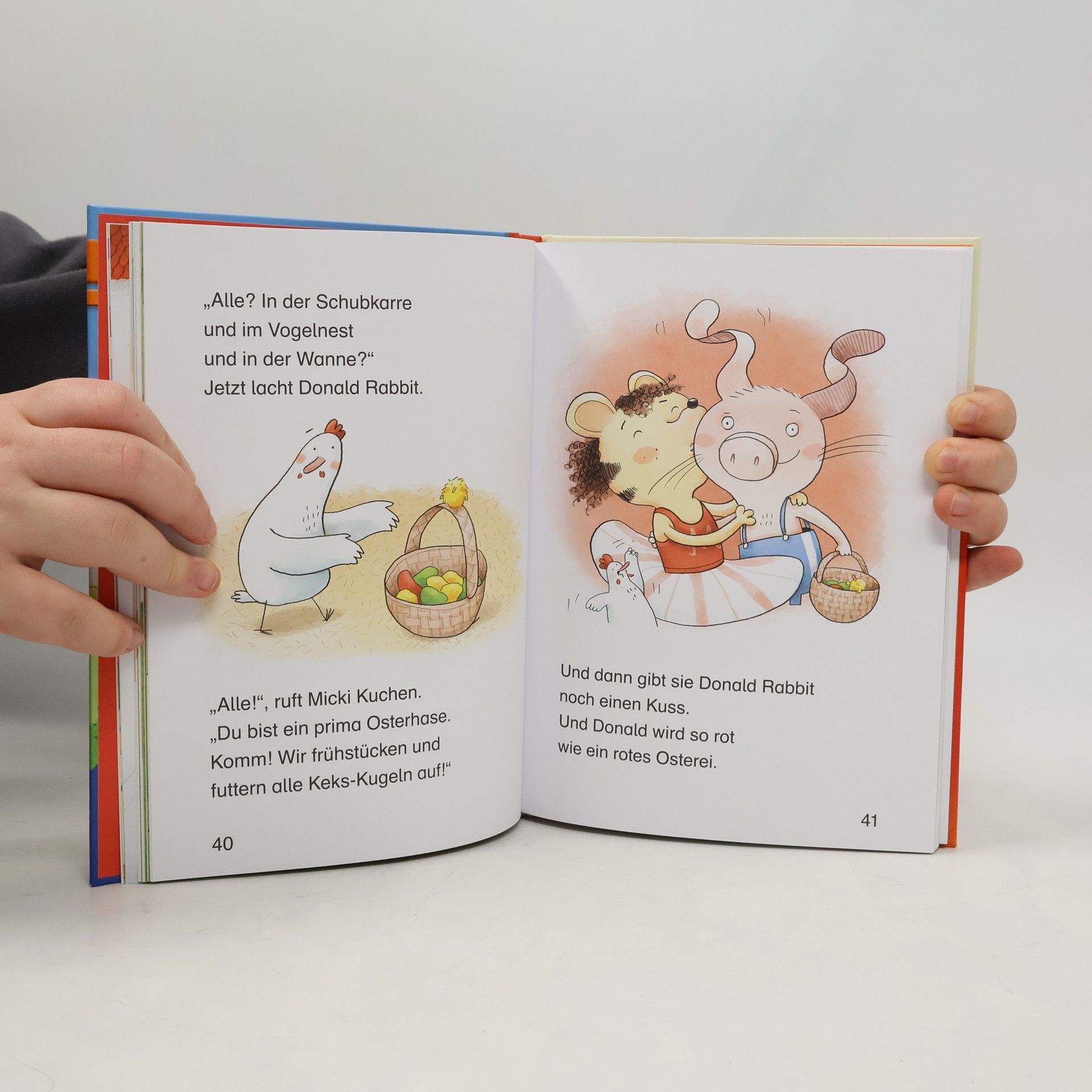 Mit drei lustigen Geschichten von Eierlaufen, bunten Ostereiern bis zum Osterhasen beginnt die Vorfreude auf Ostern. Eine bunte Osterüberraschung wartet so im Garten auf Donald Rabbit und Micki Kuchen, die sich trotz Regen das Osterfest nicht trüben lassen. In der nächsten Geschichte findet Emma ihren ganz eigenen Osterhasen, als sie ein verängstigtes Wildkaninchen pflegt - und was ist wohl die dritte Geschichte? Na - das ist dann wohl eine (Oster-)Überraschung. Lesen lernen wie im Flug! Die Kinderbücher der Reihe Leserabe – 1. Lesestufe wurden mit Pädagogen entwickelt und richten sich an Leseanfänger ab der 1. Klasse. Kurze Texte in großer Fibelschrift sichern erste Leseerfolge und steigern die Lesekompetenz von Mädchen und Jungen ab 6 Jahren. Empfohlen von Stiftung Lesen, gelistet bei Antolin.