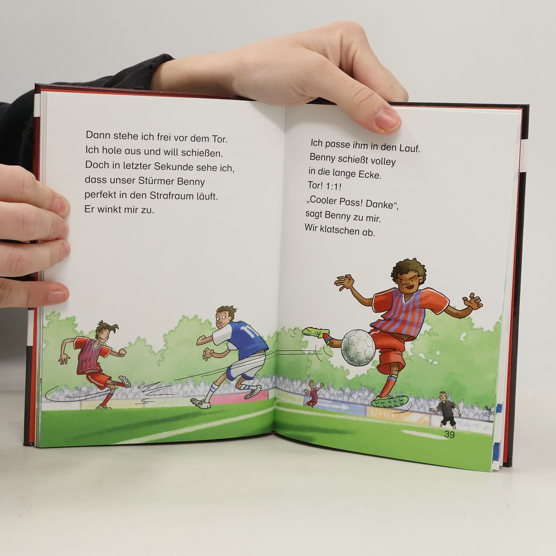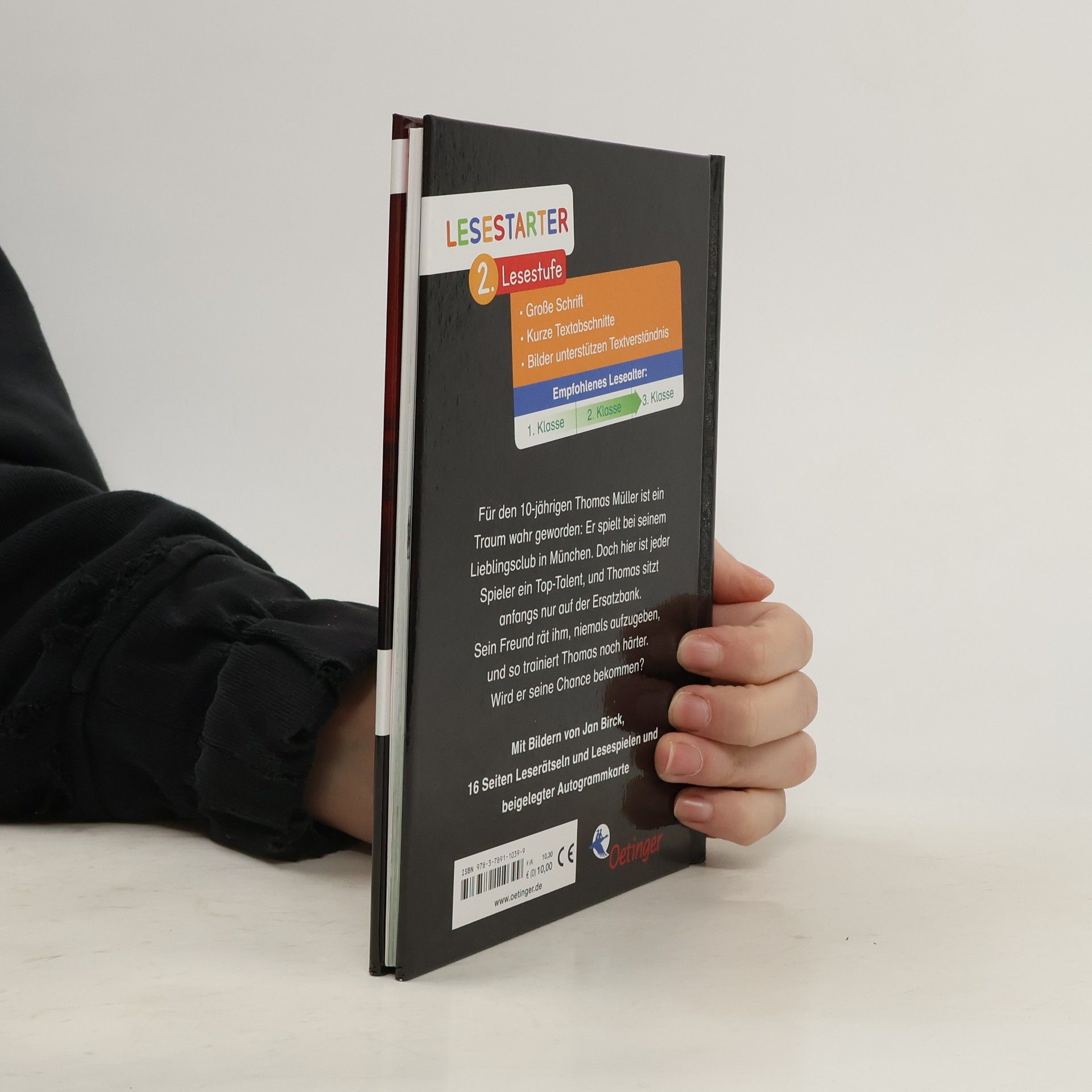 „Mein Weg in die Startelf“ von Thomas Müller erzählt die inspirierende Geschichte des jungen Thomas, der seinen Platz im FC Bayern München erkämpft. Seine Reise beginnt mit zehn Jahren auf der Ersatzbank und führt durch hartes Training und die Unterstützung seines Teamkollegen Martin zu seiner ersten großen Chance. Dieses Buch richtet sich an Leseanfänger zwischen 7 und 9 Jahren und vermittelt die Freuden und Herausforderungen des Fußballs. Es enthält zahlreiche Comic-Illustrationen, große Schriftarten und kurze Textabschnitte, die das Lesen erleichtern. Zudem sind 16 Seiten mit Leserätseln und Spielen enthalten, die das Verständnis fördern und die Handlung lebendig machen. Gelistet bei Antolin, ist es speziell für junge Fußballfans konzipiert, um sie durch die spannende Geschichte zum Lesen zu motivieren. Die Kombination aus Bildung und Unterhaltung wird durch die Spiele und Rätsel verstärkt, die das Gelesene vertiefen. Visuell unterstütztes Lernen wird durch große Schrift und Illustrationen gefördert, was das Interesse am Lesen steigert. Thomas Müllers Geschichte inspiriert Kinder, ihre Träume durch Anstrengung und Ausdauer zu verfolgen, und verbindet die Leidenschaft für Fußball mit dem Lesenlernen, was es für junge Leser besonders ansprechend macht.