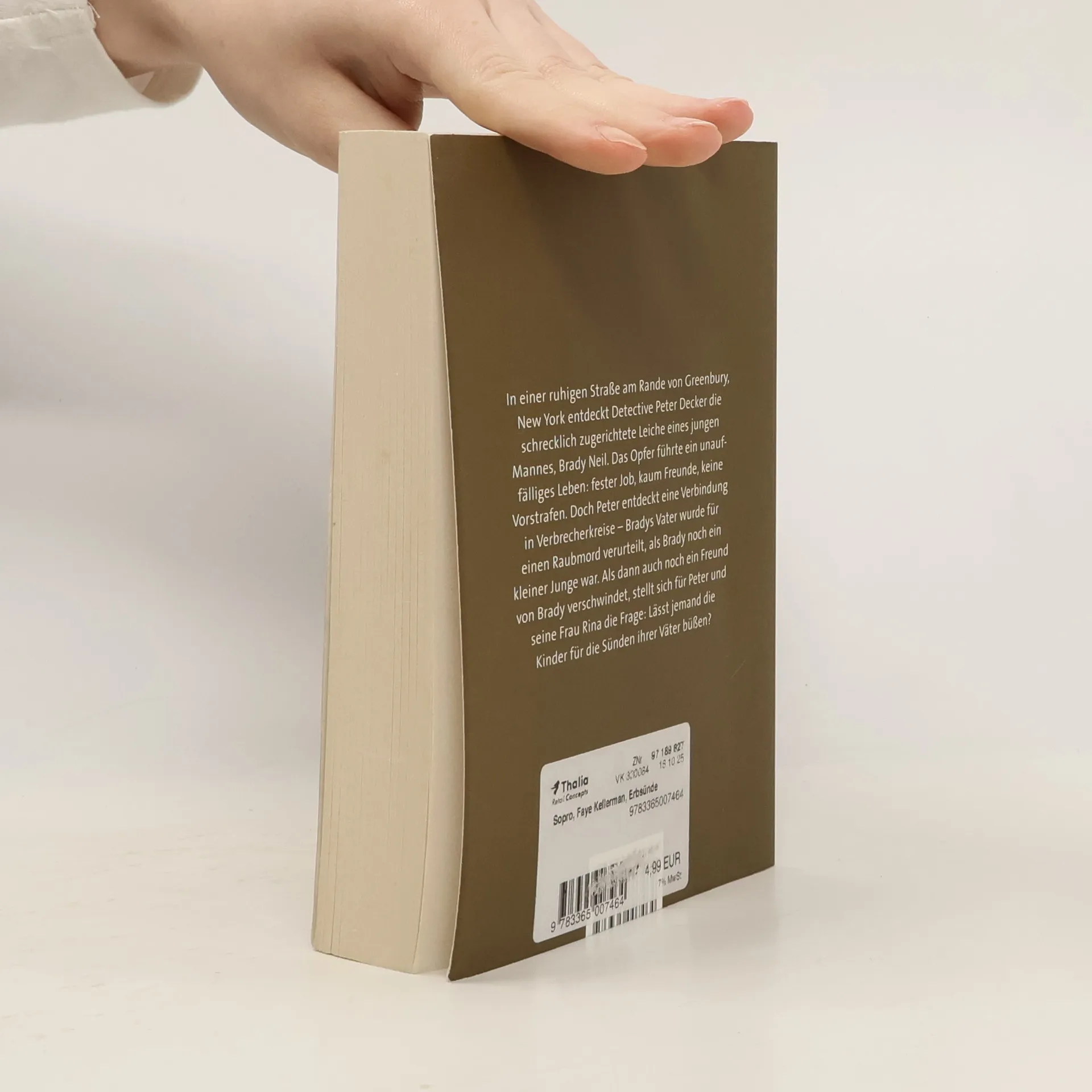 Die Sünden ihrer Väter ... In einer ruhigen Straße am Rande von Greenbury, New York entdeckt Detective Peter Decker die schrecklich zugerichtete Leiche eines jungen Mannes, Brady Neil. Das Opfer führte ein unauffälliges Leben: fester Job, kaum Freunde, keine Vorstrafen. Doch Peter entdeckt eine Verbindung in Verbrecherkreise – Bradys Vater wurde für einen Raubmord verurteilt, als Brady noch ein kleiner Junge war. Als dann auch noch ein Freund von Brady verschwindet, stellt sich für Peter und seine Frau Rina die Frage: Lässt jemand die Kinder für die Sünden ihrer Väter büßen? » Faye Kellerman ist einfach eine exzellente Autorin. « The Times » Faye Kellermans Bücher machen süchtig. « Huffington Post » Guter Schreibstil, spannend mit einer Prise Humor – ein Buch, das Spaß macht. « Mainhattan Kurier