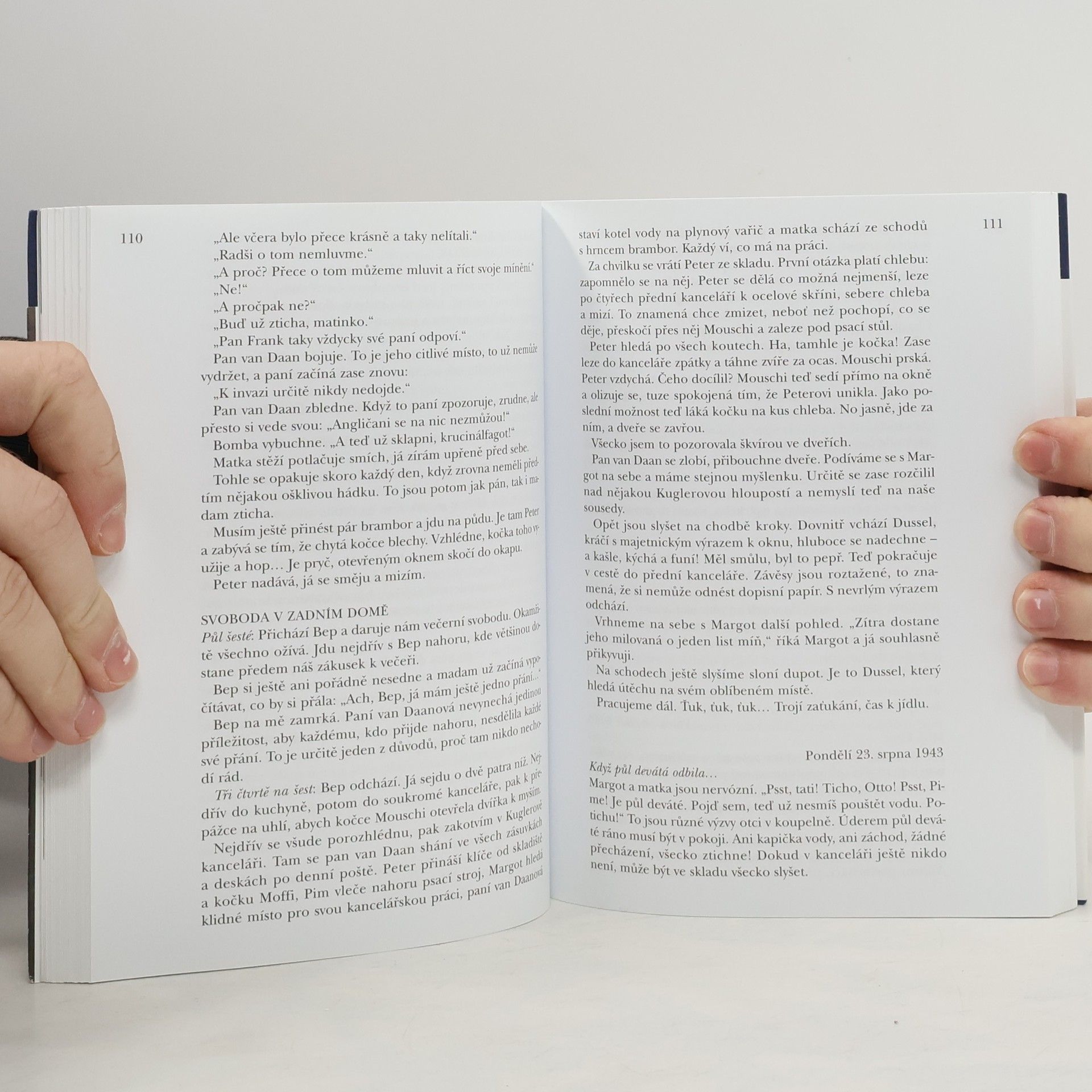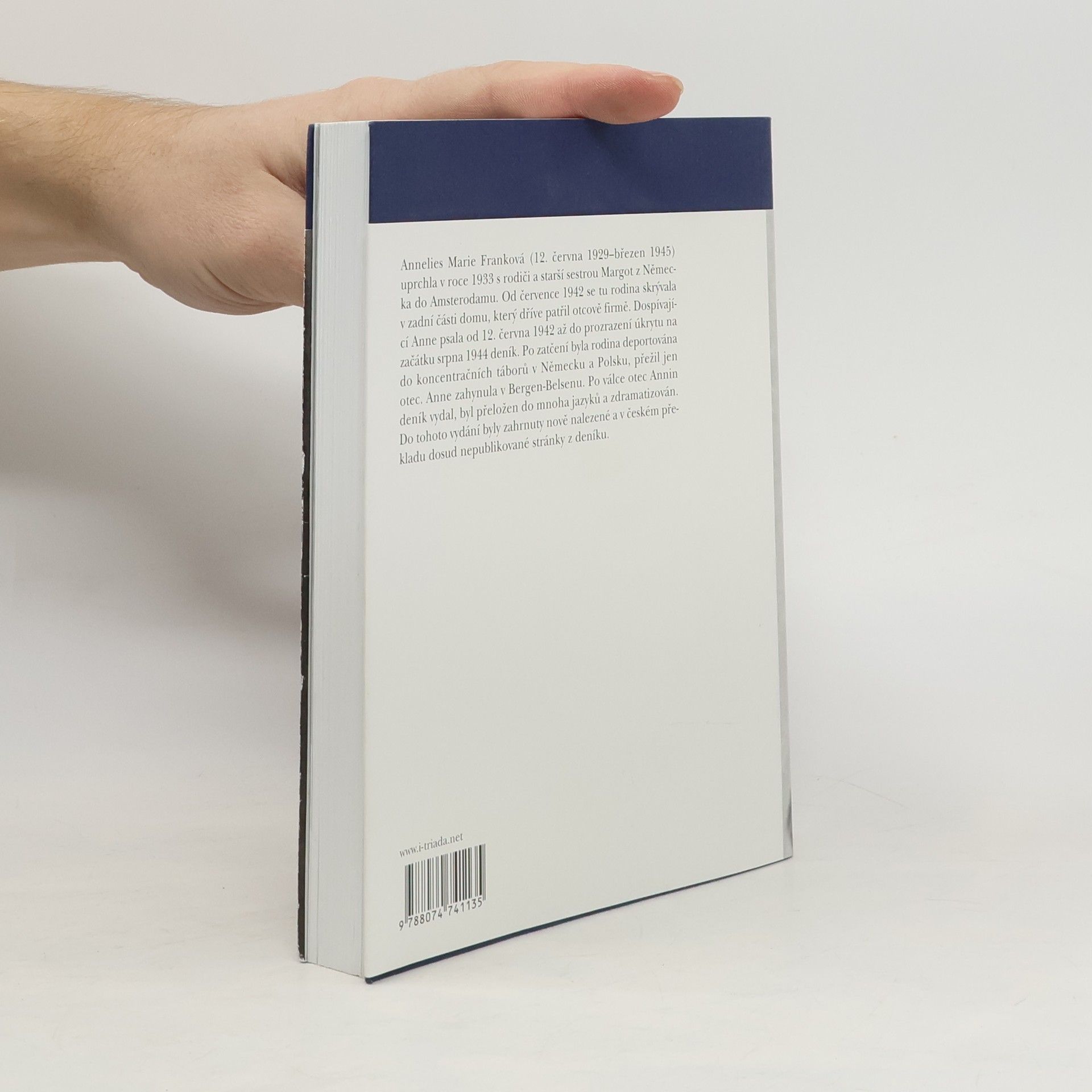 Annelies Marie Franková (12. června 1929 - březen 1945) v roce 1933 s rodiči uprchla z Německa do Amsterodamu, kde se rodina od roku 1942 skrývala v půdním bytě. Dospívající Anne psala od 12. června 1942 do 4. srpna 1944 deník. Po prozrazení skrýše byla rodina odvezena do koncentračních táborův Německu, přežil jen otec. Anne zahynula v Bergen-Belsenu. Po válce otec deník vydal, byl přeložen do mnoha jazyků a zdramatizován. Toto české vydání obsahuje poprvé nově nalezené a dosud nepublikované stránky. 5. vydání