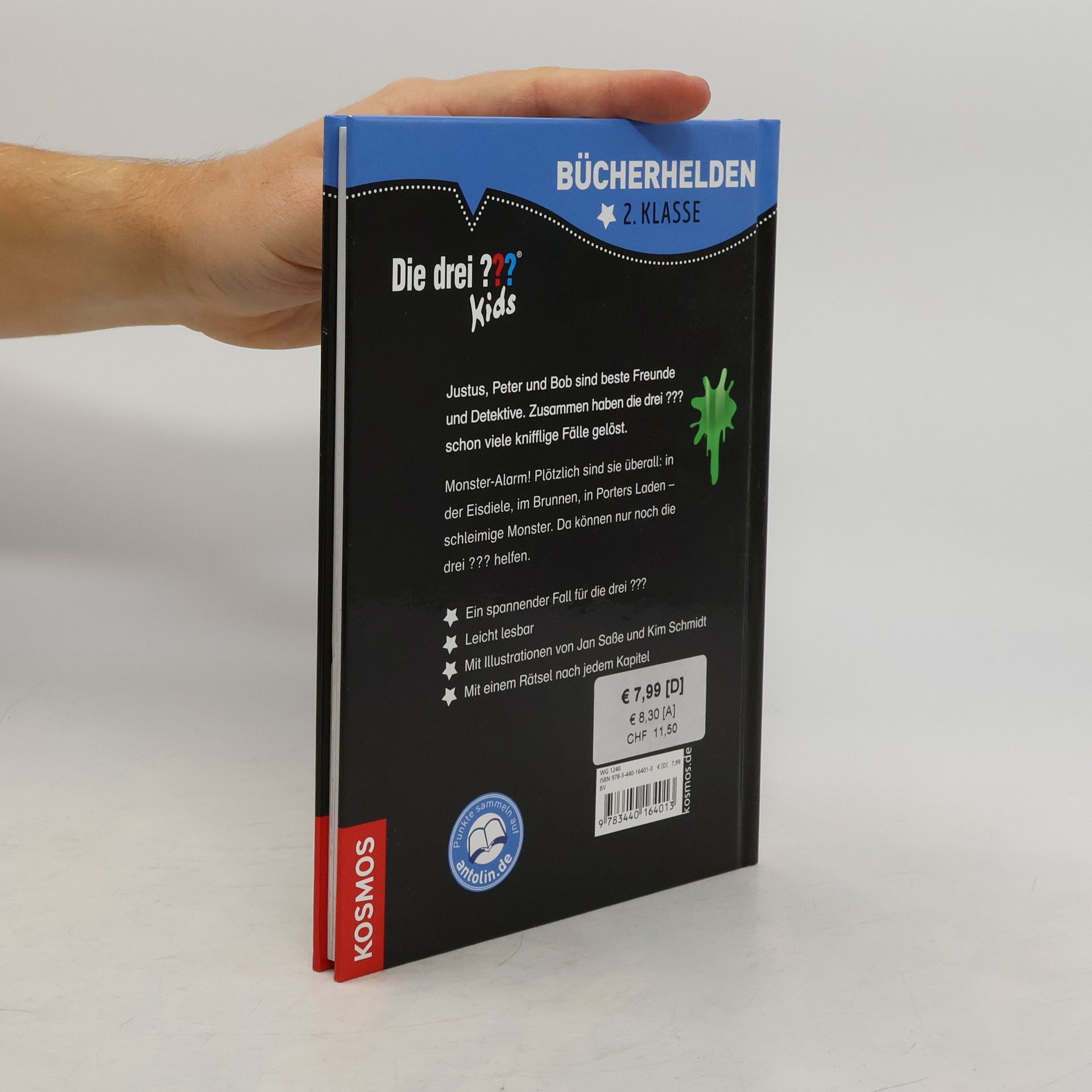 Justus, Peter und Bob sind beste Freunde und Detektive! Zusammen haben die drei ??? schon viele knifflige Fälle gelöst. Monster-Alarm in Rocky Beach! Überall tauchen sie plötzlich auf: in der Eisdiele, im Brunnen – schleimige Monster. Justus, Peter und Bob merken schnell: das ist alles nur ein PR-Gag für den neuen Kinofilm „Monsterjäger“. Doch dann gehen die Monster plötzlich auf Diebestour und die drei ??? Kids müssen doch noch ermitteln… Lesen lernen ist schwer? Nicht mit dieser spannenden Geschichte, die auch Leseanfänger ab Klassenstufe 2 leicht bewältigen können. Illustrationen und ein Leserätsel am Ende jedes Kapitels machen den Band abwechslungsreich, sorgen für Erfolgserlebnisse und erhöhen die Lesemotivation. So macht der Einstieg ins selbstständige Bücherlesen einfach Spaß.