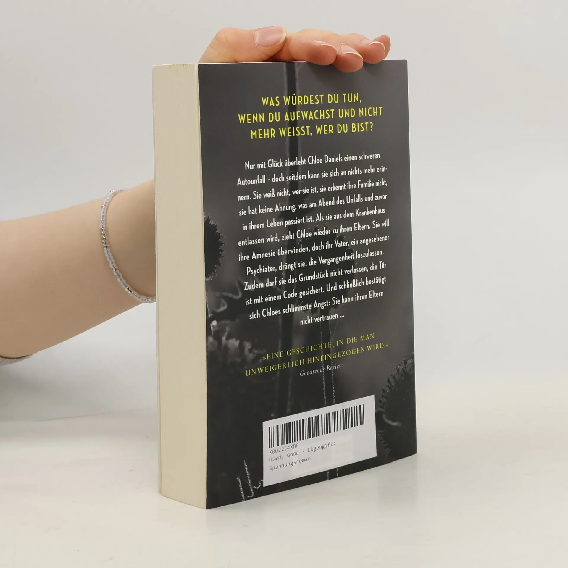 Nur mit Glück überlebt Chloe Daniels einen schweren Autounfall – doch seitdem kann sie sich an nichts mehr erinnern. Sie weiß nicht, wer sie ist, sie erkennt ihre Familie nicht, sie hat keine Ahnung, was am Abend des Unfalls und zuvor in ihrem Leben passiert ist. Als sie aus dem Krankenhaus entlassen wird, zieht Cloe wieder zu ihren Eltern. Sie will ihre Amnesie überwinden, doch ihr Vater, ein angesehener Psychiater, drängt sie, die Vergangenheit loszulassen. Zudem darf sie das Grundstück nicht verlassen, die Tür ist mit einem Code gesichert. Und schließlich bestätigt sich Chloes schlimmste Angst: Sie kann ihren Eltern nicht vertrauen ...
