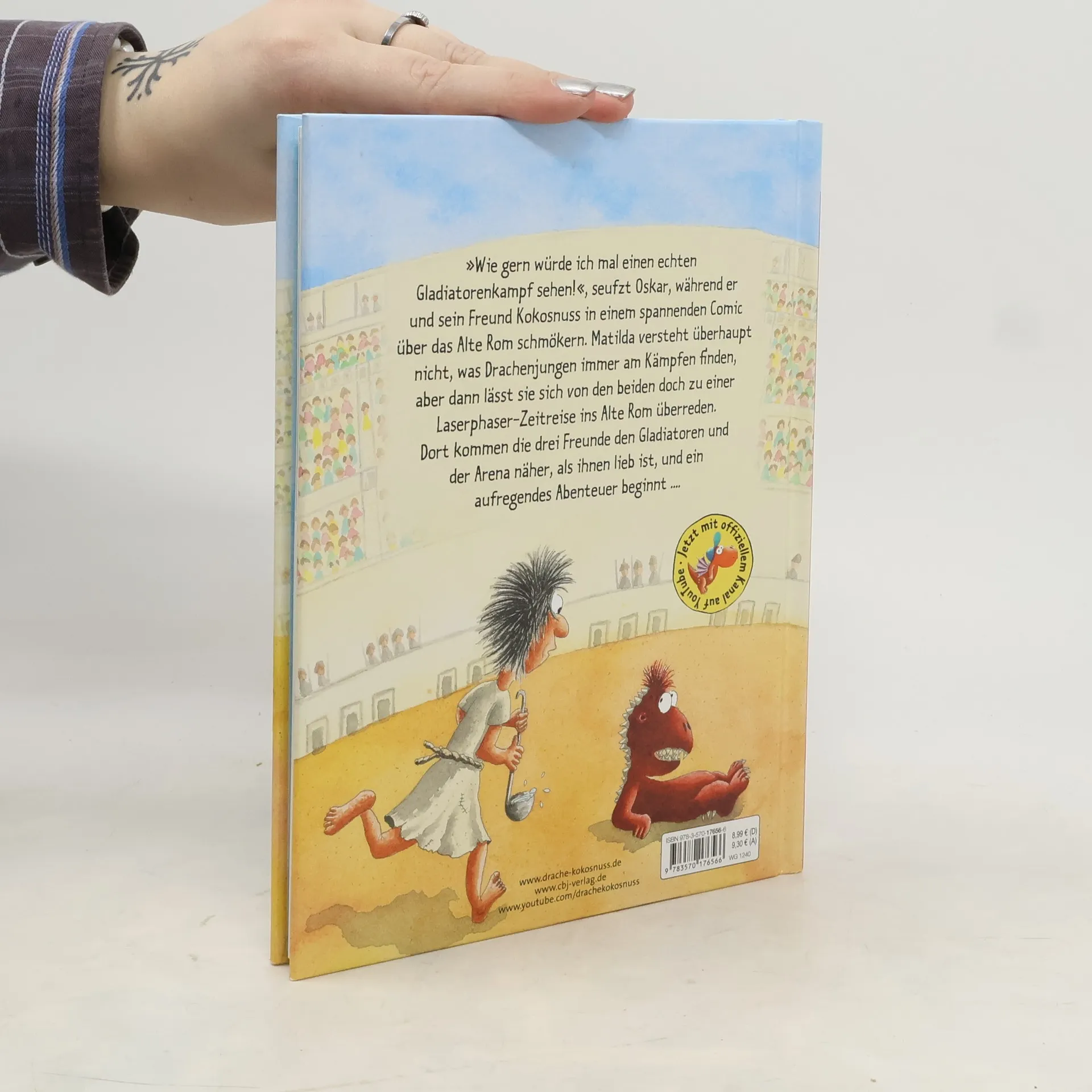 Ein aufregendes Zeitreise-Abenteuer ins Alte Rom »Manno, wie gern würde ich mal einen echten Gladiatorenkampf sehen!«, seufzt Oskar, während er und sein Freund Kokosnuss in einem spannenden Comic über das Alte Rom schmökern. Matilda versteht überhaupt nicht, was die Drachenjungen immer am Kämpfen finden, aber dann lässt sie sich doch zu einer Laserphaser-Zeitreise ins Alte Rom überreden. Sie landen in einem Wald vor den Toren Roms, wo sie einen entlaufenen Sklaven treffen. Noch während der Sklave ihnen seine Geschichte erzählt, werden sie von den Häschern des Kaisers gefangen genommen und in die Gladiatorenschule gesteckt ... Die Geschichten über die aufregenden Abenteuer, die der kleine Drache Kokosnuss mit seinen Freunden erlebt, sind inzwischen wahre Kinderbuchklassiker. Ingo Siegner schreibt über Freundschaft und Mut und fügt liebenswert-originelle Illustrationen hinzu. Die »Dein-Spiegel-Bestseller«-Reihe eignet sich perfekt zum Vor- und Selberlesen.