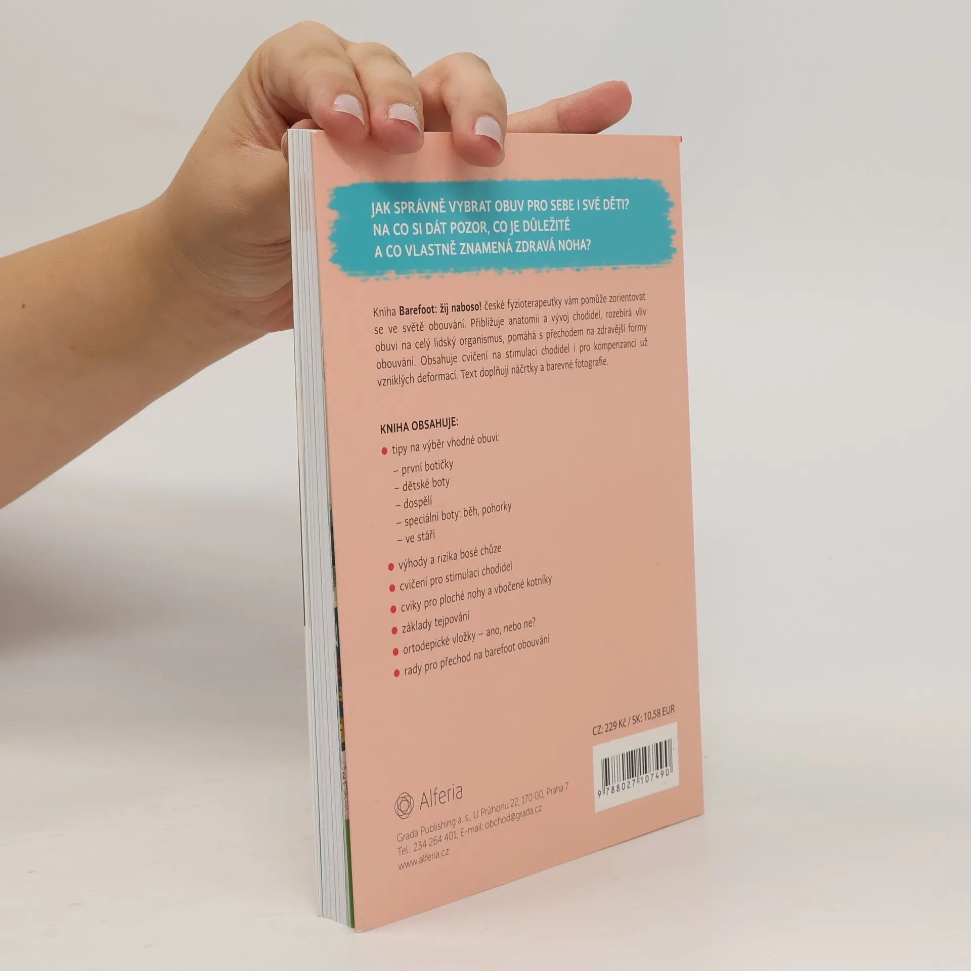 Jak správně vybrat obuv pro sebe i své děti? Na co si dát pozor, co je důležité a co vlastně znamená zdravá noha? Barefoot: Žij naboso od české fyzioterapeutky vám pomůže zorientovat se ve světě obouvání. Přibližuje anatomii a vývoj chodidel, rozebírá vliv obuvi na celý lidský organismus, pomáhá v přechodu na zdravější formy obouvání. Obsahuje cvičení na stimulaci chodidel i pro kompenzanci už vzniklých deformací. Text doplňují náčrtky a barevné fotografie.