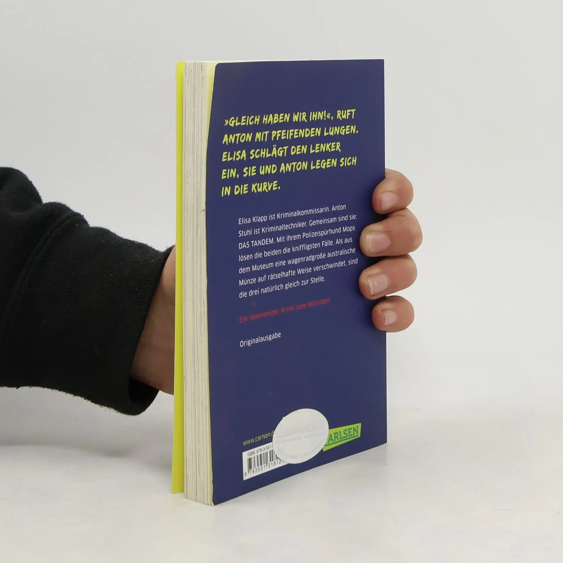 Elisa Klapp ist Kriminalkommissarin. Anton Stuhl ist Kriminaltechniker. Gemeinsam sind sie: DAS TANDEM. Nicht nur, weil sie ein Spitzen-Team sind, sondern auch, weil ihr Dienstfahrzeug das einzige Polizei-Tandem in ganz Deutschland ist. Pfeilschnell, umweltfreundlich und technisch voll auf Zack. Gemeinsam mit ihrem Polizeispürhund Mops lösen Elisa und Anton die kniffligsten Kriminalfälle. Als aus dem Museum eine wagenradgroße australische Münze auf rätselhafte Weise verschwindet, sind die drei natürlich gleich zur Stelle. *** Kniffliger Rätselspaß, ideal für die Ferien!