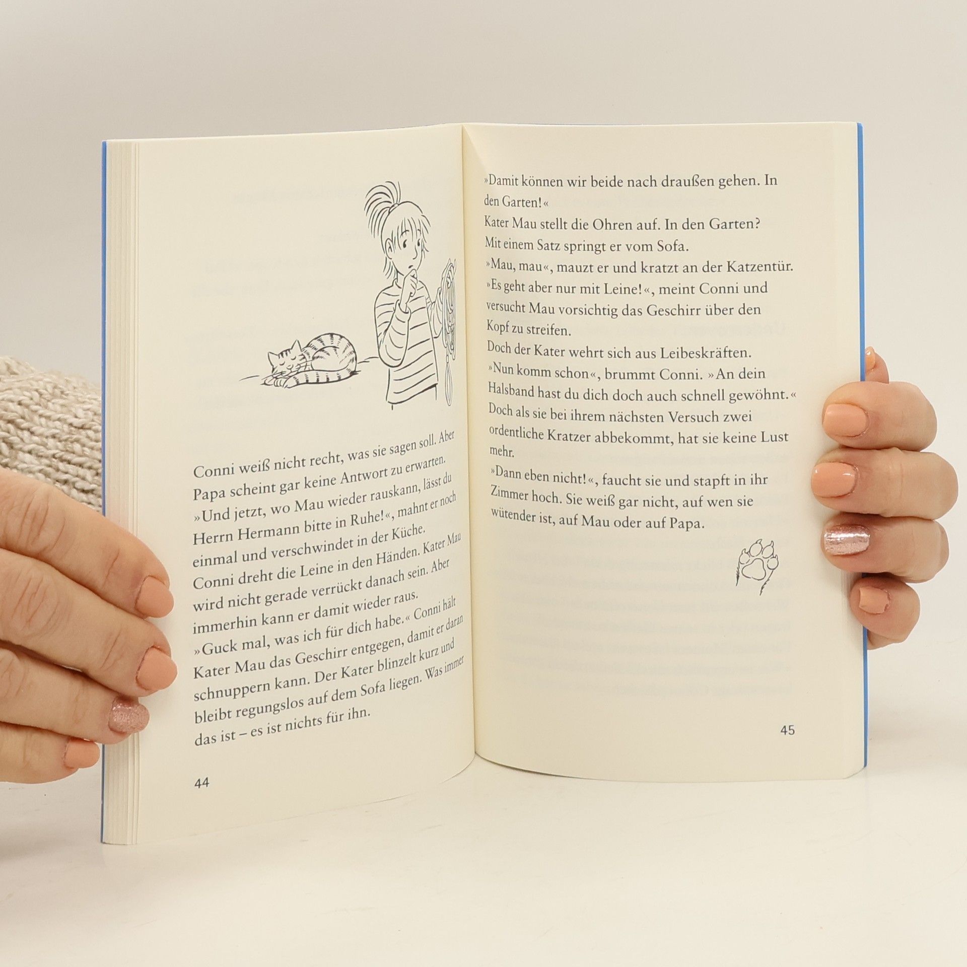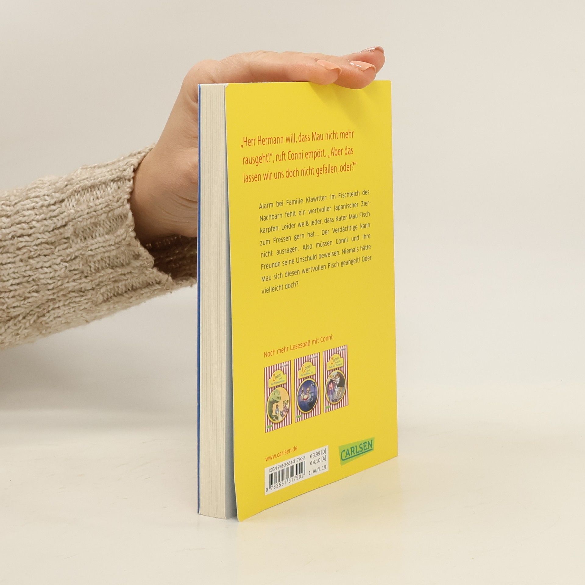 Alarm bei Familie Klawitter: Im Fischteich des Nachbarn fehlt ein wertvoller japanischer Zierkarpfen. Leider weiß jeder, dass Kater Mau Fisch zum Fressen gern hat... Der Verdächtige kann nicht aussagen. Also müssen Conni und ihre Freunde seine Unschuld beweisen. Niemals hätte Mau sich diesen wertvollen Fisch geangelt! Oder vielleicht doch?