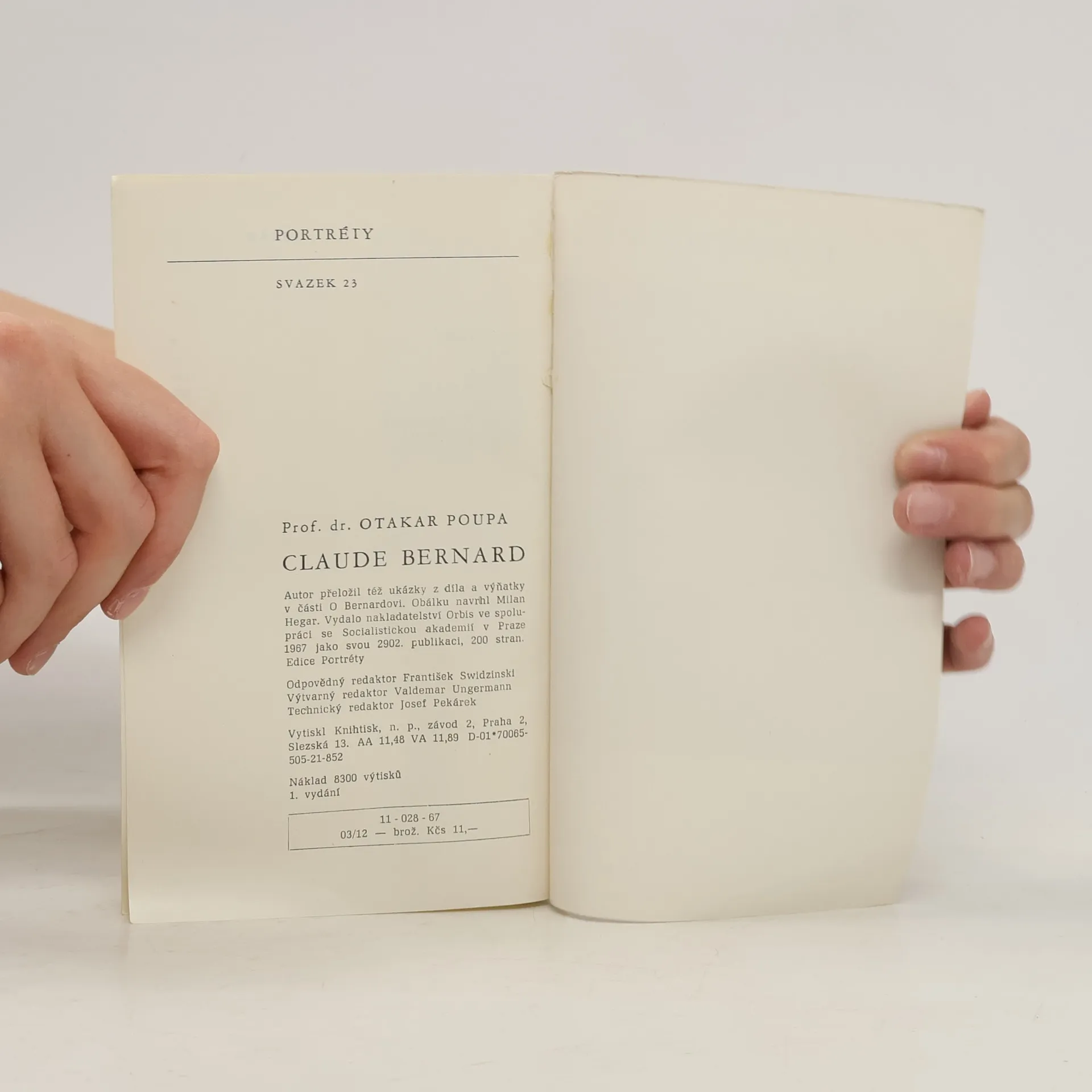 Monografie o Claude Bernardovi (1813-1878, francouzský fyziolog ). Po stručném přehledu vývoje lékařství přibližuje monografie poutavou formou životní osudy a vědecké zásluhy francouzského fyziologa, jehož objevy se staly základem celé moderní fyziologie a biochemie. Připojeny jsou výroky významných osobností o Bernardovi. Ukázky z díla a citáty přeložil autor.