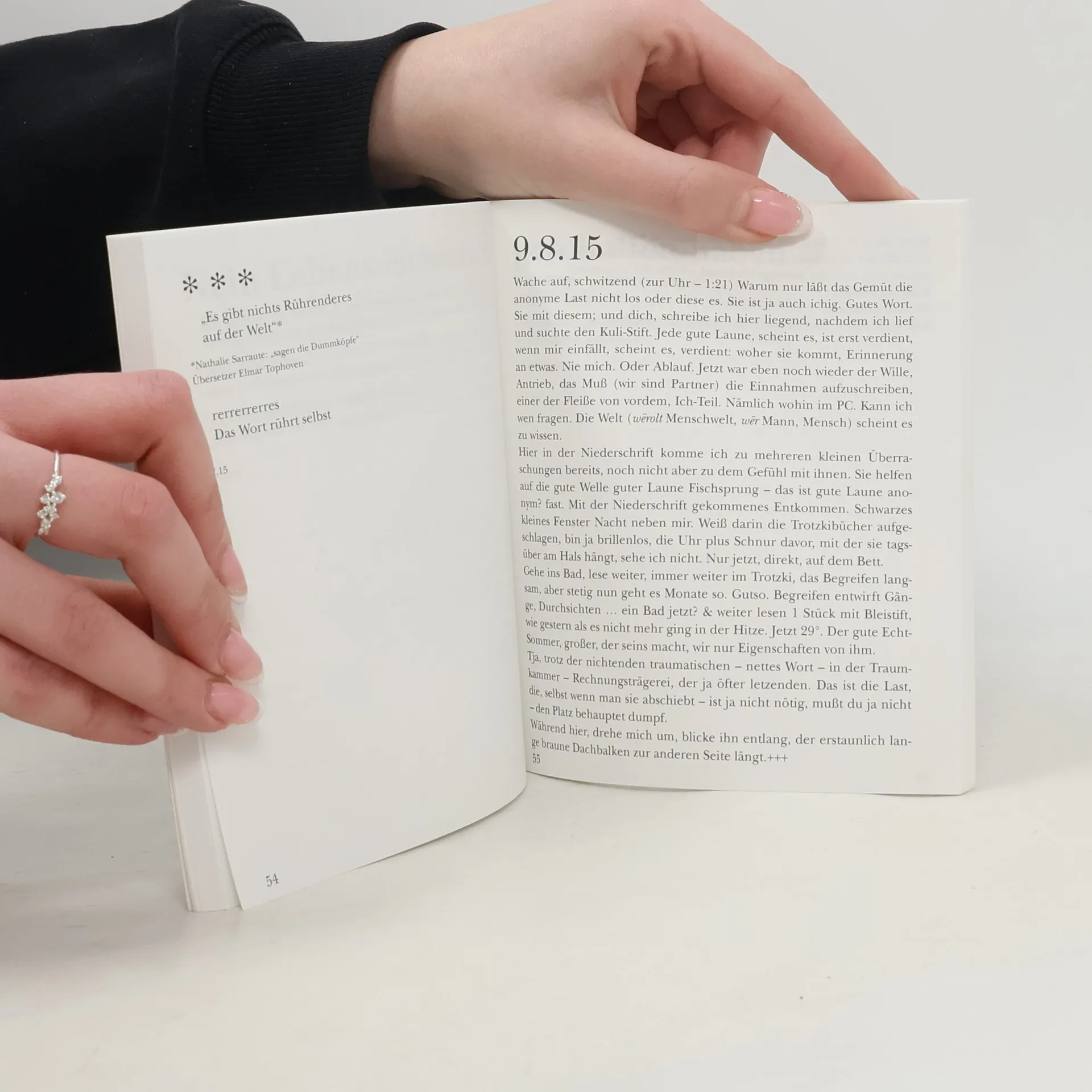 Der jüngste Gedichtband von Elke Erb beginnt mit einem älteren Text, „Die Olympiade“ von 1970, wie alle Texte in diesem Buch im Sommer, den Elke Erb jeweils in Wuischke verbringt, „aus dem Tagebuch geholt“ und hier zum ersten Mal veröffentlicht: „Jammerschade, dass es nicht gelingt, diesen Traum zu erzählen ...“ Das letzte Gedicht, „Das mit dem Baum“ vom „12.12.18, halb sieben“, ist den Bäumen gewidmet: „Sie werden mich übersterben. / Meine Handflächen meinen: Schade um sie.“ Von Traum zu Baum, dem Faden der Geduld entlang, mit dem Elke Erb das Alltäglichste und das Wunderbarste miteinander verbunden hat. Das ist „Poesie“: „Ich sagte plötzlich beim Frühstück mit den beiden hier auf dem Land: / Man ist ja irgendwie immer elf, und Geli: stimmt, sie sei immer 12. / Ei!“
