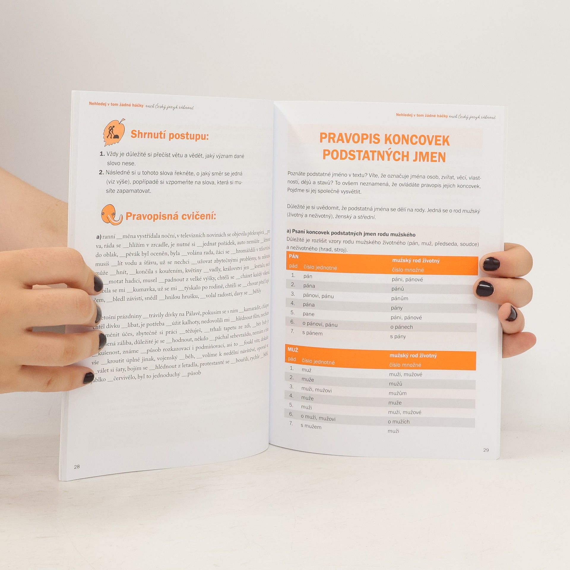 Cvičebnice českého jazyka pro žáky 2. stupně základních škol.Publikace se soustředí především na záludnosti českého jazyka – např. psaní tvarů bě/bje, vě/vje, užití předložek s, z, předpon s-, z-, vz-, zájmen ji/jí, naši/naší apod. Po srozumitelném vysvětlení daného gramatického jevu vždy následují zábavná cvičení, na konci pak žáci najdou řadu pracovních listů, v nichž si mohou ověřit veškeré nabyté znalosti.