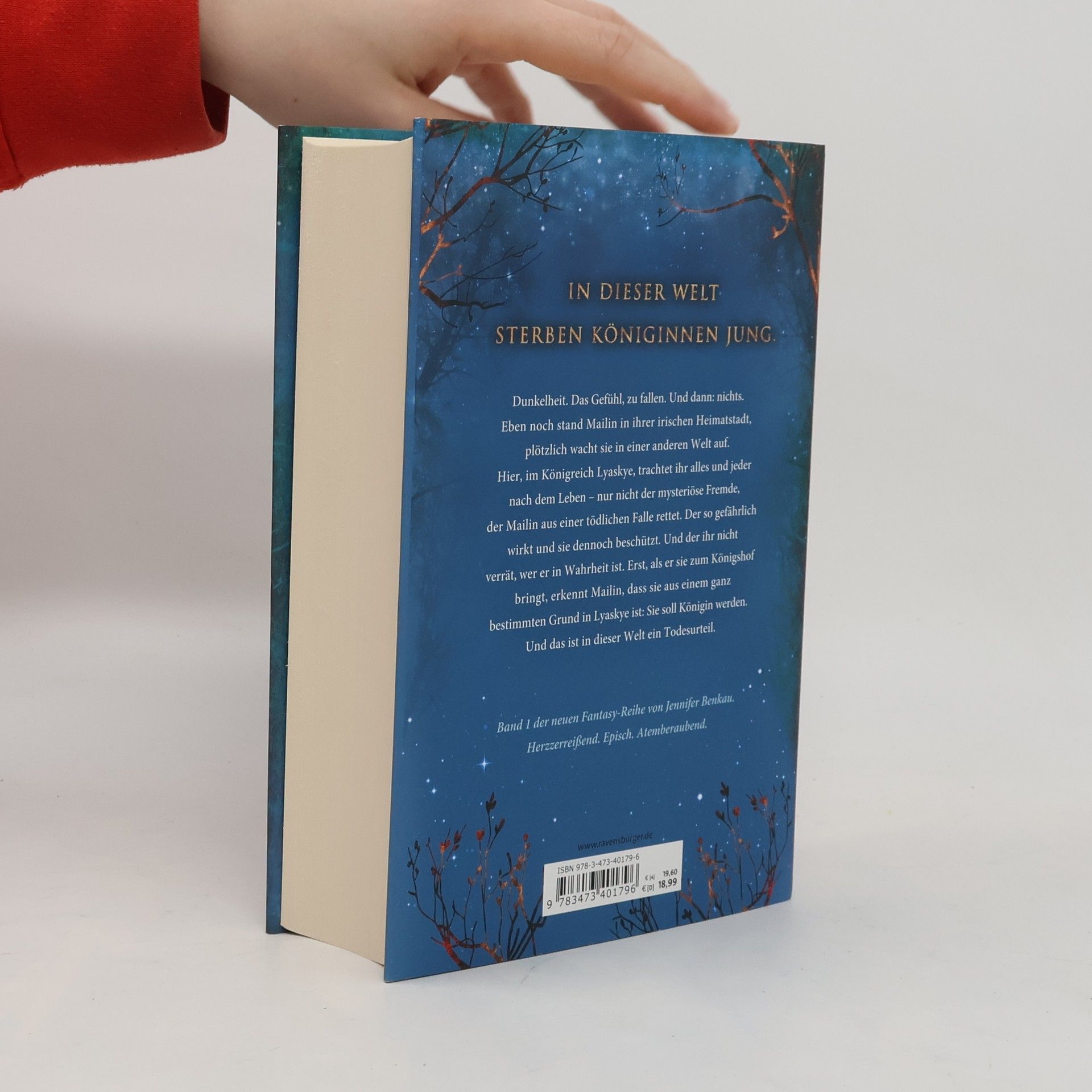 In dieser Welt sterben Königinnen jung. Dunkelheit. Das Gefühl, zu fallen. Und dann: nichts. Mailin wacht in einer anderen Welt auf, im Königreich Lyaskye, wo ihr Leben von allen bedroht wird – bis ein mysteriöser Fremder sie rettet. Er wirkt gefährlich, schützt sie jedoch. Als er sie zum Königshof bringt, erkennt Mailin, dass sie nicht ohne Grund in Lyaskye ist: Sie soll Königin werden, was in dieser Welt ein Todesurteil bedeutet. Band 1 der High-Romantasy-Reihe von SPIEGEL-Bestsellerautorin Jennifer Benkau ist herzzerreißend, episch und atemberaubend. Die Romantasy-Reihen „One True Queen“, „Das Reich der Schatten“ und „The Lost Crown“ spielen in derselben Fantasy-Welt, können aber unabhängig voneinander gelesen werden. Sie sind in folgender Reihenfolge erschienen: - One True Queen, Band 1: Von Sternen gekrönt - One True Queen, Band 2: Aus Schatten geschmiedet - Das Reich der Schatten, Band 1: Her Wish So Dark - Das Reich der Schatten, Band 2: His Curse So Wild - The Lost Crown, Band 1: Wer die Nacht malt - The Lost Crown, Band 2: Wer das Schicksal zeichnet Zusätzlich gibt es New-Adult-Romance von Jennifer Benkau: - A Reason To Stay (Liverpool-Reihe 1) - A Reason To Hope (Liverpool-Reihe 2)