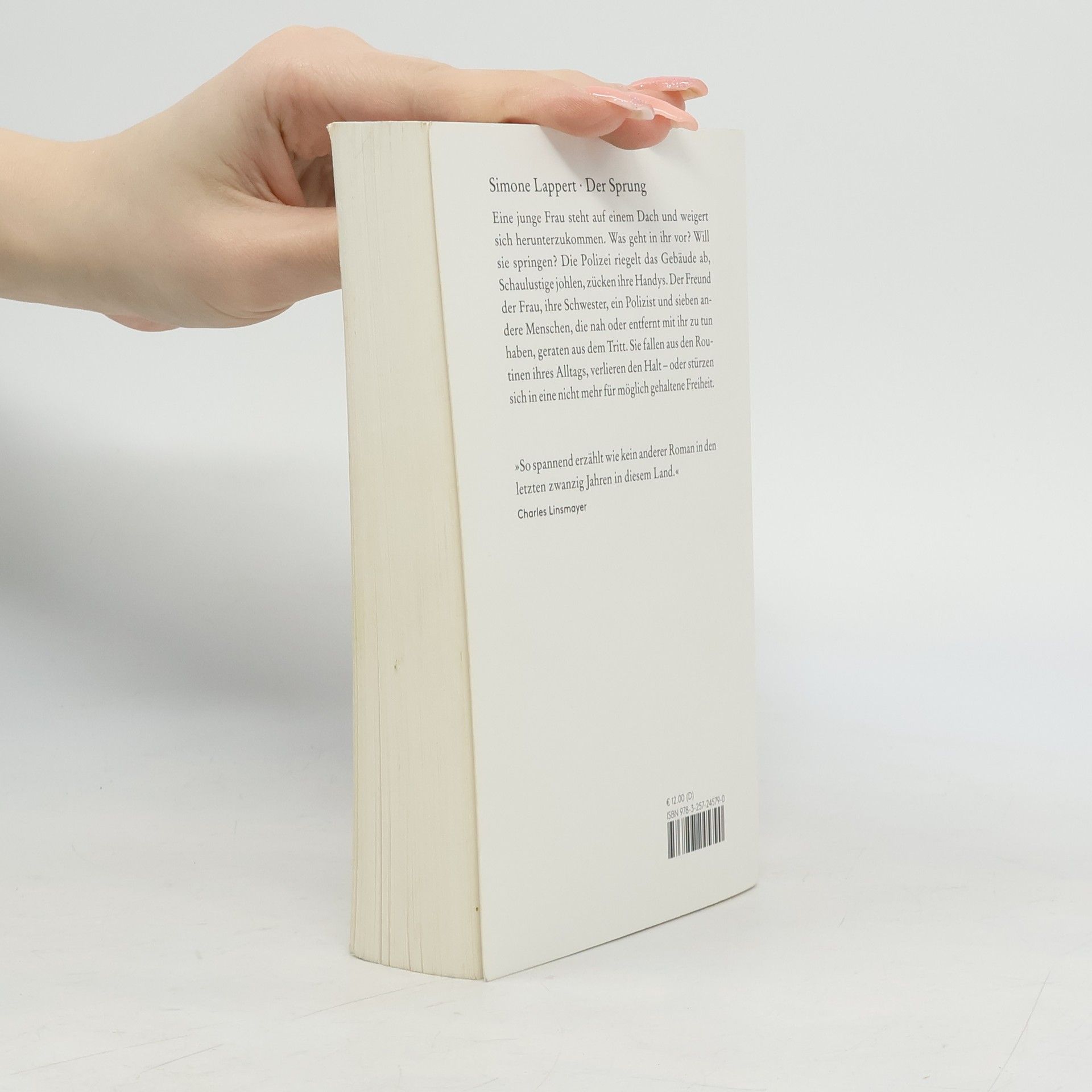 Eine junge Frau steht auf einem Dach und weigert sich herunterzukommen. Was geht in ihr vor? Will sie springen? Die Polizei riegelt das Gebäude ab, Schaulustige johlen, zücken ihre Handys. Der Freund der Frau, ihre Schwester, ein Polizist und sieben andere Menschen, die nah oder entfernt mit ihr zu tun haben, geraten aus dem Tritt. Sie fallen aus den Routinen ihres Alltags, verlieren den Halt – oder stürzen sich in eine nicht mehr für möglich gehaltene Freiheit.