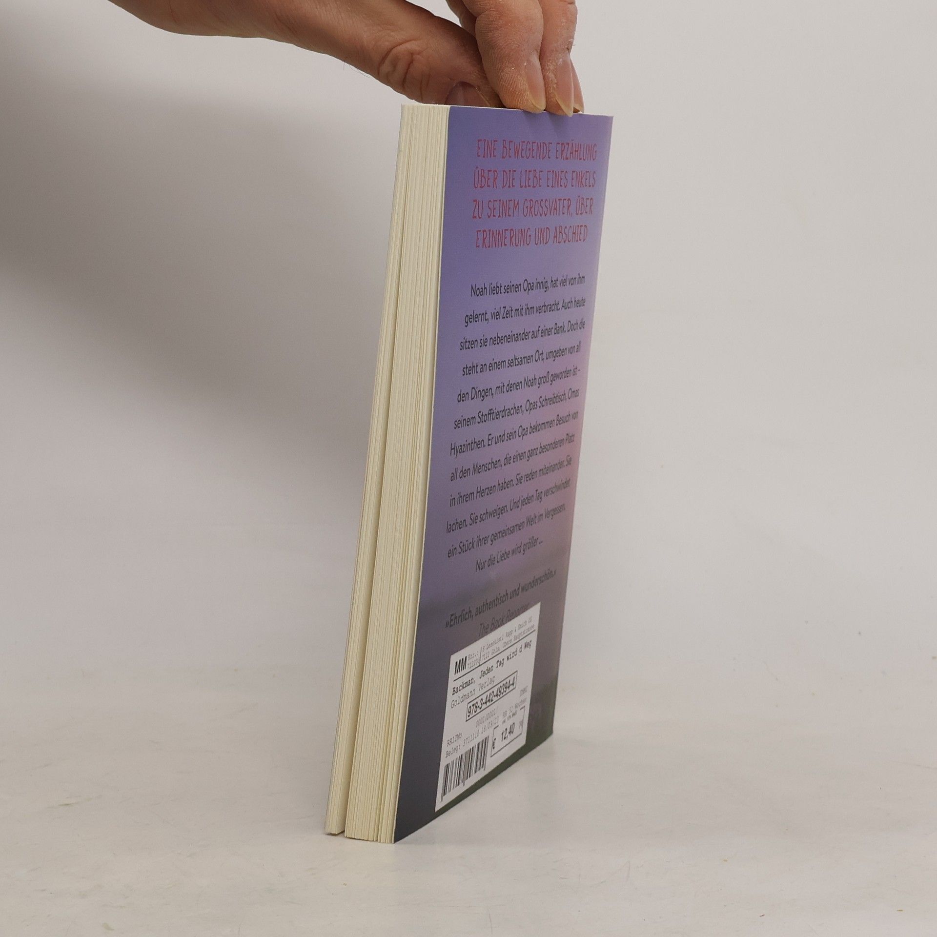 Noah hatte schon immer eine besondere Beziehung zu seinem Opa. Er liebt ihn innig, hat viel von ihm gelernt, viel Zeit mit ihm verbracht. Auch heute sitzen sie nebeneinander auf einer Bank. Doch die steht an einem seltsamen Ort, umgeben von all den Dingen, mit denen Noah groß geworden ist – seinem Stofftierdrachen, Opas Schreibtisch, Omas Hyazinthen. Dort bekommen sie Besuch von den Menschen, die einen ganz besonderen Platz in Opas und Noahs Herzen haben. Zusammen reden sie. Sie lachen. Sie schweigen. Und jeden Tag verschwindet ein Stück ihrer gemeinsamen Welt im Vergessen. Nur die Liebe wird größer ...