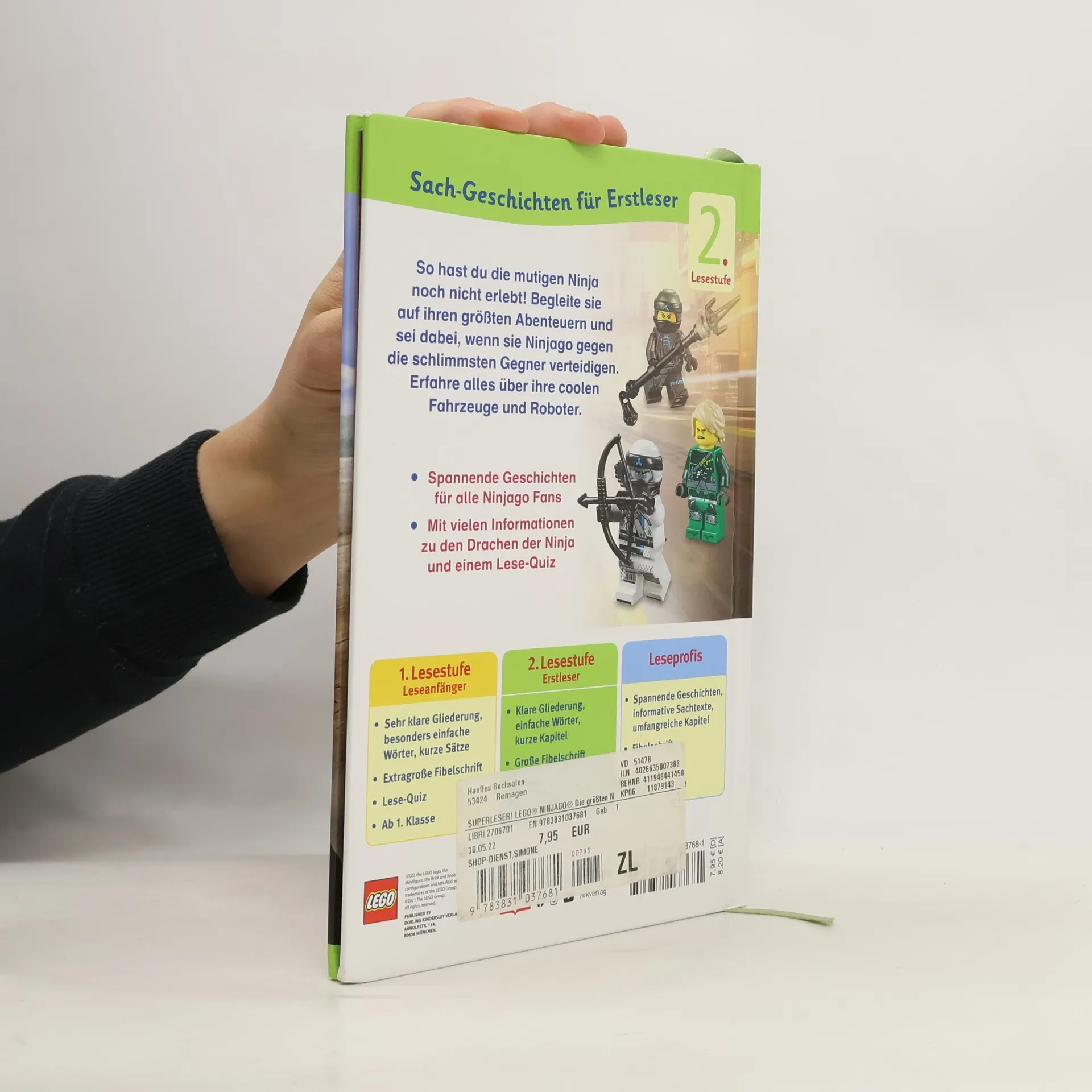 Lesen lernen mit den LEGO ® NINJAGO ® Helden: Spektakuläre Abenteuer, geheime Missionen und spannende Duelle – dieses actiongeladene SUPERLESER!-Erstlesebuch erzählt von den kühnsten Heldentaten der mutigen Ninja-Freunde. Die 64-seitige Sachgeschichte mit Quiz und Lesebändchen eignet sich perfekt zur Leseförderung. Mit kurzen Kapiteln, einfachen Wörtern, klarer Gliederung, großer Fibelschrift, tollen Fotos und Sachseiten mit spannendem Hintergrundwissen macht Lesen üben Spaß! Dieses packende Erstlesebuch wird die Fans begeistern, denn es versammelt die spannendsten Geschichten rund um die abenteuerlustigen Ninja Cole, Jay, Lloyd, Kai, Zane und Nya. Die geballte Ladung Action und Wissen ist in vier Kapiteln enthalten: detaillierte Porträts der Ninja, ihre Elemente und Ausrüstung, spannende Soloabenteuer, wichtige Geheimmissionen und die größten Abenteuer rund um den drohenden Untergang von Ninjago. Wird den Ninjas die Verteidigung ihrer Heimat gelingen? Dieses Buch ist für Erstleser der 1./2. Klasse konzipiert und bietet klare Gliederung, einfache Wörter und große Fibelschrift. Die SUPERLESER!-Reihe kombiniert Sach- und Erzählbuch, fördert altersgerecht das Lesen und enthält ein kniffliges Quiz sowie wissenswerte Informationen für Eltern. Mit den SUPERLESER-Erstlesebüchern macht Lesen riesigen Spaß!