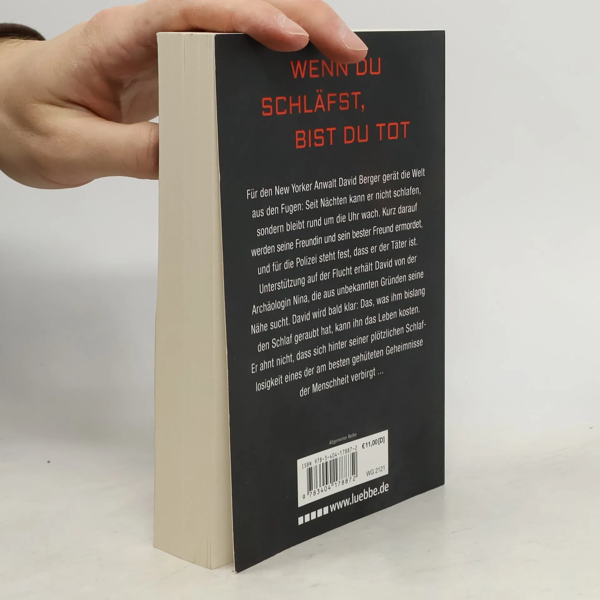 Für den New Yorker Anwalt David Berger gerät die Welt aus den Fugen: Seit Nächten kann er nicht schlafen, sondern bleibt rund um die Uhr wach. Kurz darauf werden seine Freundin und sein Freund ermordet, und für die Polizei steht fest, dass er der Täter ist. Auf der Flucht wird David klar: Das, was ihm bislang den Schlaf geraubt hat, kann ihn das Leben kosten. Er ahnt nicht, dass sich hinter seiner plötzlichen Schlaflosigkeit eines der am besten gehüteten Geheimnisse der Menschheit verbirgt ...
