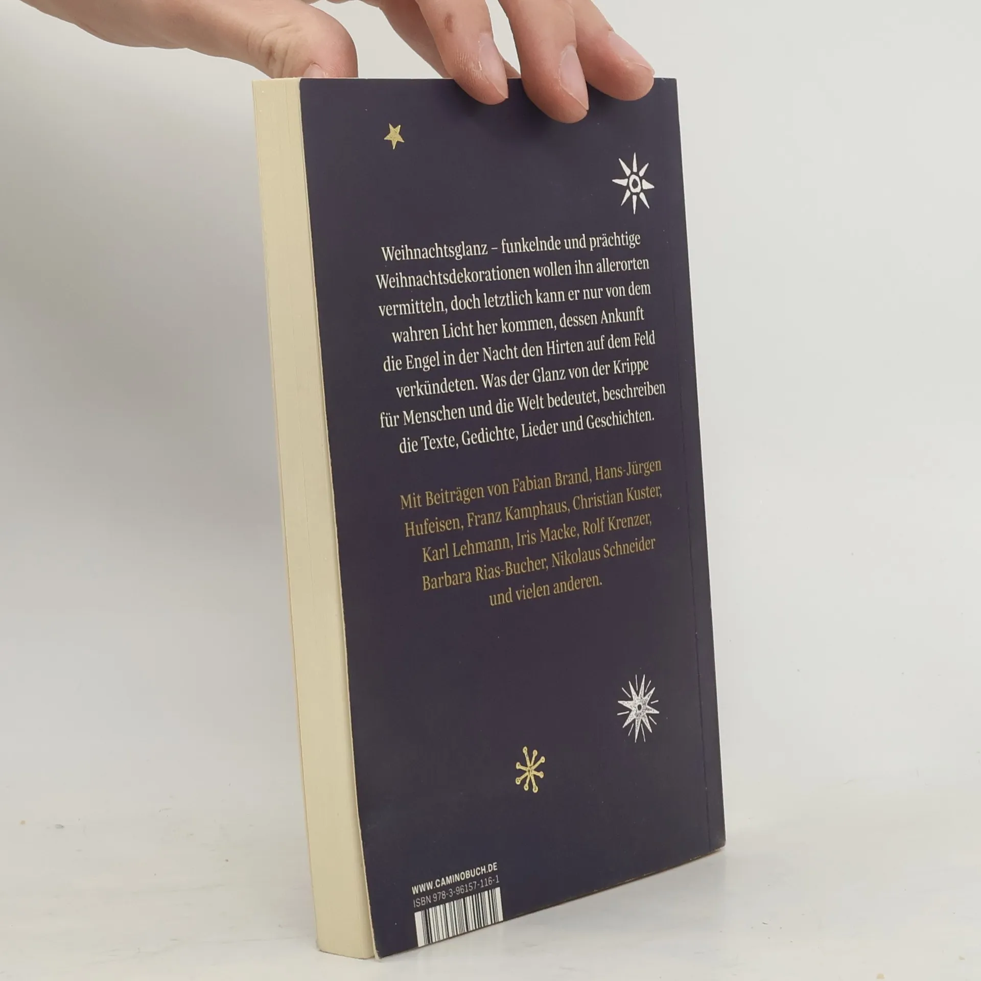 Weihnachtsglanz – funkelnde und prächtige Weihnachtsdekorationen wollen ihn allerorten vermitteln, doch letztlich geht er nur von dem wahren Licht aus, das an Weihnachten in die Welt gekommen ist; es geht um den Glanz, der von der Krippe ausgeht. Von dem Wunder, das die dunkle Nacht hell macht, handeln diese Texte, Gedichte, Lieder und Geschichten. In diesem kleinen Weihnachts-Lesebuch zum Schmökern, Nachdenken, Vorlesen oder Verschenken finden Sie Beiträge von Dietrich Bonhoeffer, Fabian Brand, Peter Cornelius, Karl Lehmann, Franz Kamphaus, Iris Macke, Rainer Maria Rilke, Anne und Nikolaus Schneider, Papst Johannes Paul II., Lothar Zenetti und vielen anderen. Zitat: »Es genügt schon ein einziger Stern in der Nacht, um wieder an das Licht zu glauben. Suche den Stern, den Gott eigens für dich entzündet hat.« (Phil Bosmans)
