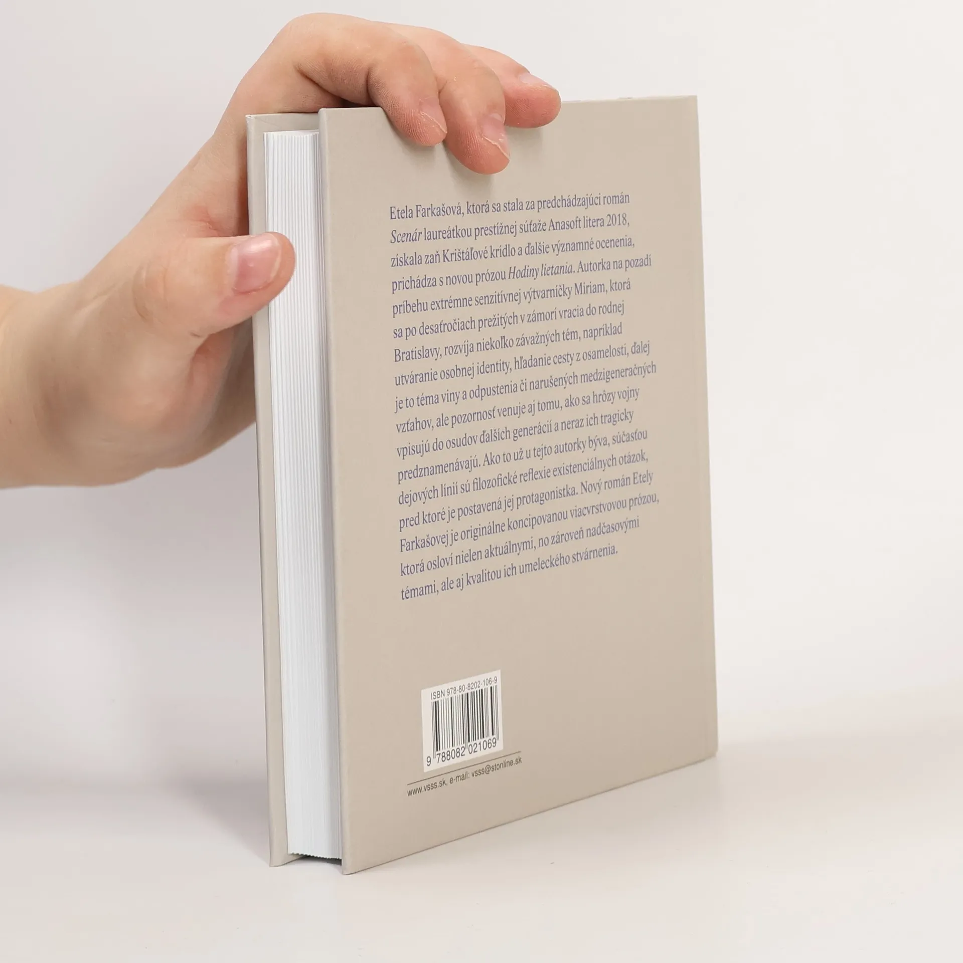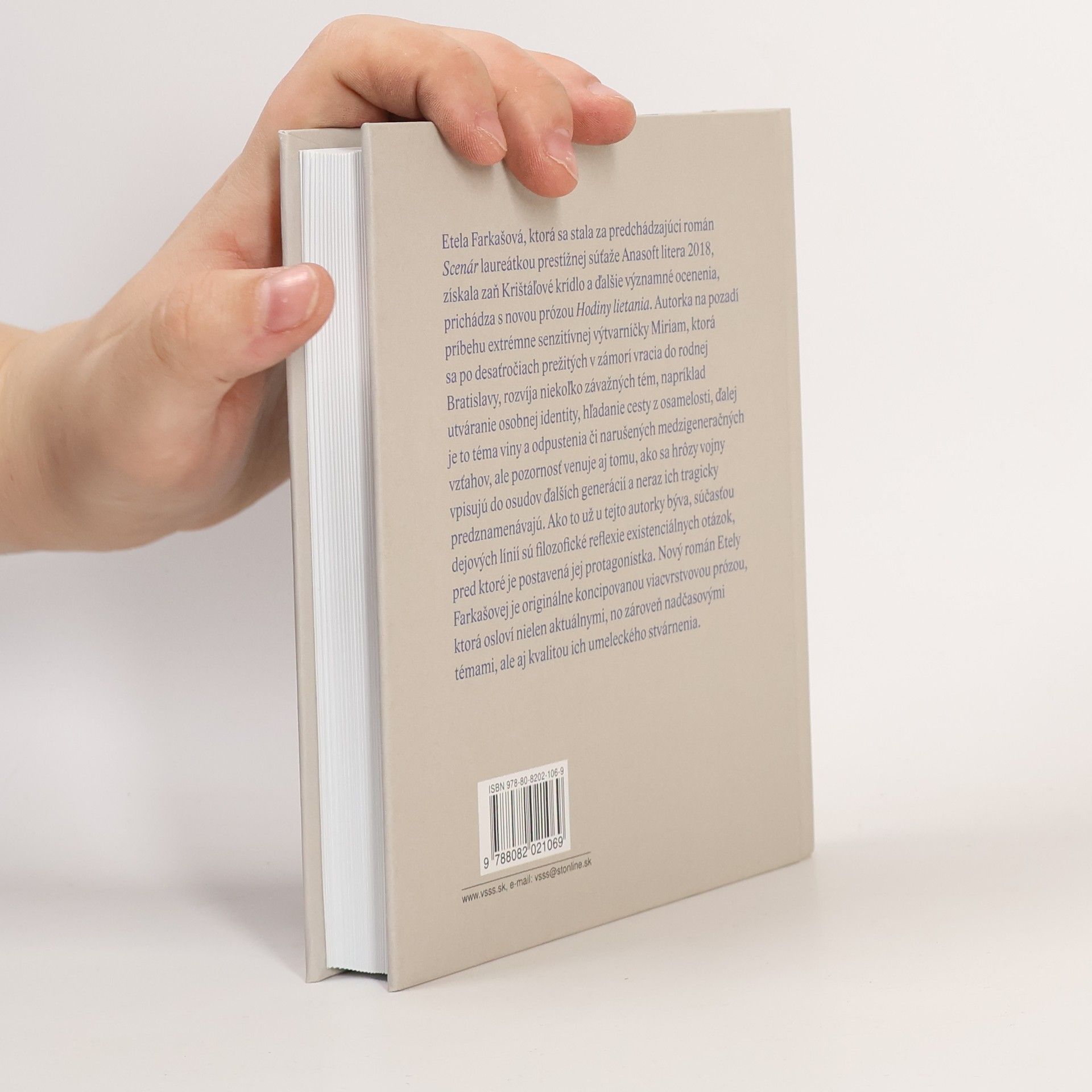 Etela Farkašová, ktorá sa stala za predchádzajúci román Scenár laureátkou prestížnej súťaže Anasoft litera 2018, získala zaň Krištáľové krídlo a ďalšie významné ocenenia, prichádza s novou prózou Hodiny lietania. Autorka na pozadí príbehu extrémne senzitívnej výtvarníčky Miriam, ktorá sa po desaťročiach prežitých v zámorí vracia do rodnej Bratislavy, rozvíja niekoľko závažných tém, napríklad utváranie osobnej identity, hľadanie cesty z osamelosti, ďalej je to téma viny a odpustenia či narušených medzigeneračných vzťahov, ale pozornosť venuje aj tomu, ako sa hrôzy vojny vpisujú do osudov ďalších generácií a neraz ich tragicky predznamenávajú. Ako to už u tejto autorky býva, súčasťou dejových línií sú filozofické reflexie existenciálnych otázok, pred ktoré je postavená jej protagonistka. Nový román Etely Farkašovej je originálne koncipovanou viacvrstvovou prózou, ktorá osloví nielen aktuálnymi, no zároveň nadčasovými témami, ale aj kvalitou ich umeleckého stvárnenia.