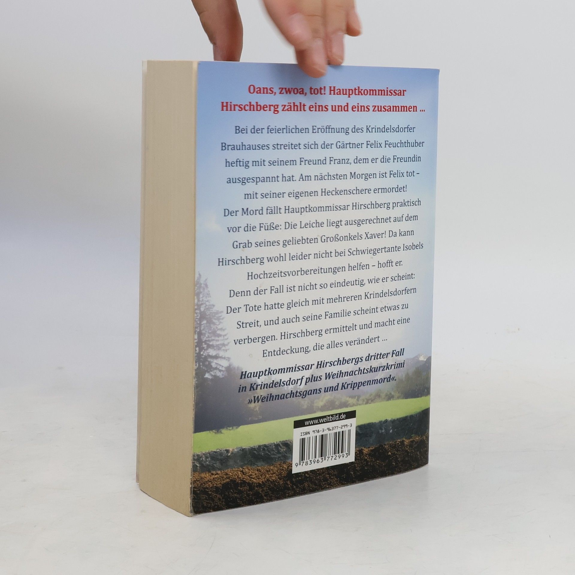 Oans, zwoa, tot! Hauptkommissar Hirschberg zählt eins und eins zusammen ... Bei der feierlichen Eröffnung des Krindelsdorfer Brauhauses streitet sich der Gärtner Felix Feuchthuber heftig mit seinem Freund Franz, dem er die Freundin ausgespannt hat. Am nächsten Morgen ist Felix tot - mit seiner eigenen Heckenschere ermordet! Der Mord fällt Hauptkommissar Hirschberg praktisch vor die Füße: Die Leiche liegt ausgerechnet auf dem Grab seines geliebten Großonkels Xaver! Da kann Hirschberg wohl leider nicht bei Schwiegertante Isobels Hochzeitsvorbereitungen helfen - hofft er. Denn der Fall ist nicht so eindeutig, wie er scheint: Der Tote hatte gleich mit mehreren Krindelsdorfern Streit, und auch seine Familie scheint etwas zu verbergen. Hirschberg ermittelt und macht eine Entdeckung, die alles verändert ... Urkomisch, spannend, bayrisch: Hauptkommissar Hirschbergs dritter Fall in Krindelsdorf.