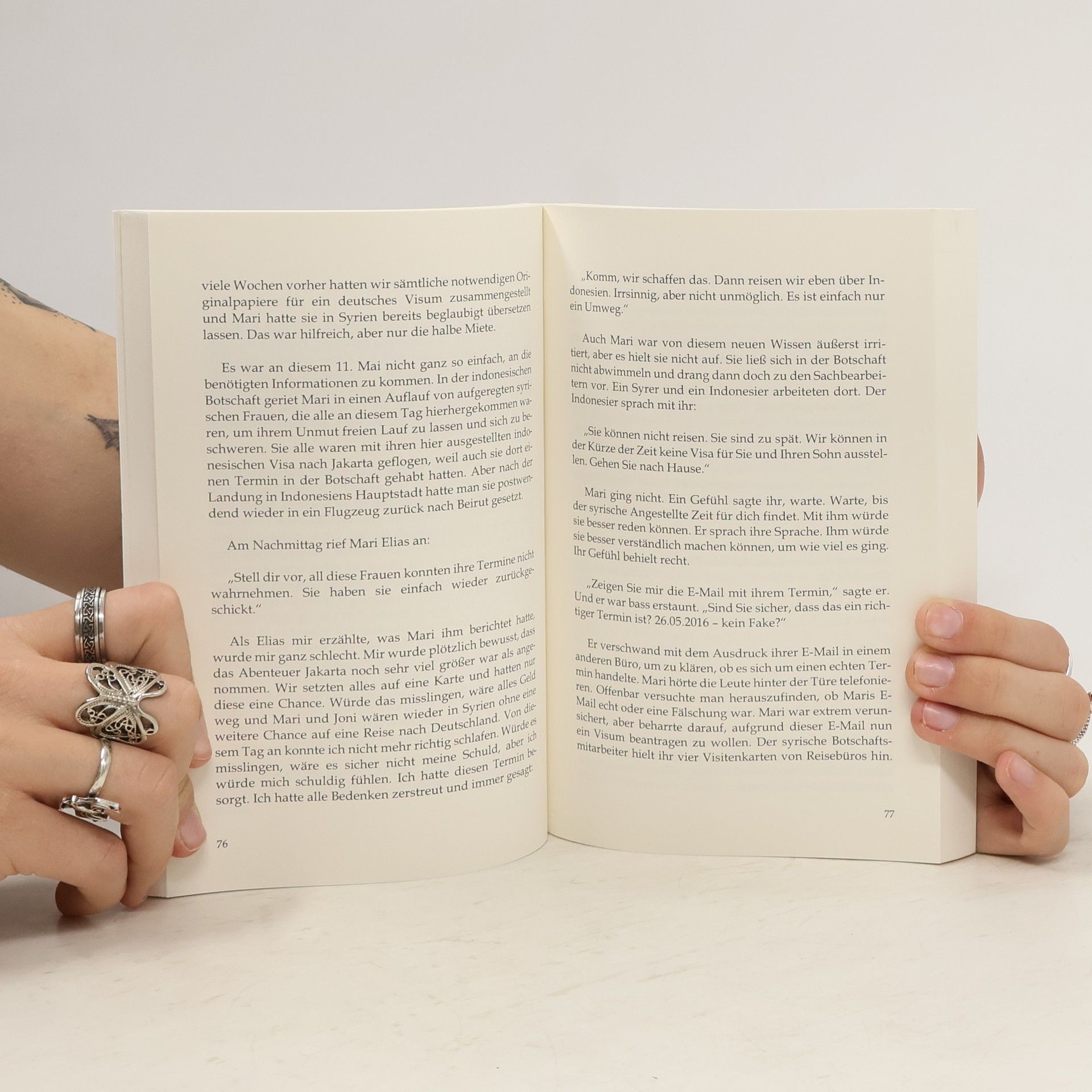 'Umweg Jakarta' ist ein authentischer Bericht über die nervenaufreibende Organisation einer Familienzusammenführung. Gegen alle Widerstände ist es der Autorin gelungen, eine Frau und ihren 10jährigen Sohn von Damaskus in Syrien über Jakarta in Indonesien nach Deutschland zu bringen. Gleichzeitig erfährt der Leser einiges über das Leben und Leiden eines syrischen Familienvaters in seinem ersten Jahr in Deutschland, wohin er aus dem Krieg in seiner Heimat geflohen war, um seiner Familie eine Zukunft zu schaffen. Am Ende der Geschichte bleiben eine Frage - warum macht es Deutschland den nachzugsberechtigten Familien so schwer, ein Visum zu erhalten? - und eine Erkenntnis: Ohne Hilfe sind die Neuankömmlinge hilflos und Integration ist ohne Unterstützung von uns Deutschen nicht möglich. Wir müssen aufeinander zugehen, wenn es gelingen soll. Wie ein Symbol für diese Erkenntnis steht die Tatsache, dass 'Umweg Jakarta' in einer zweisprachigen Version (dt./arab.) erhältlich ist. Zwei Sprachen, wie sie unterschiedlicher nicht sein könnten - nach 140, bzw. 116 Seiten begegnen sie einander. Ein Buch, das von vorne und hinten beginnt. Eine Geschichte, die aus zwei Familien eine gemacht hat.