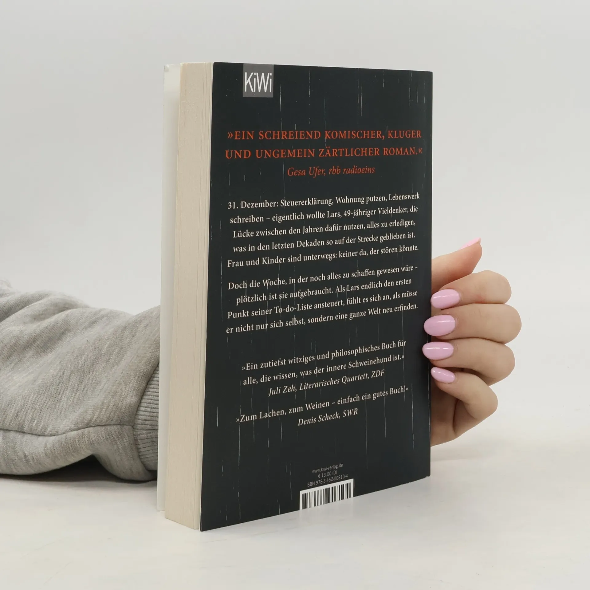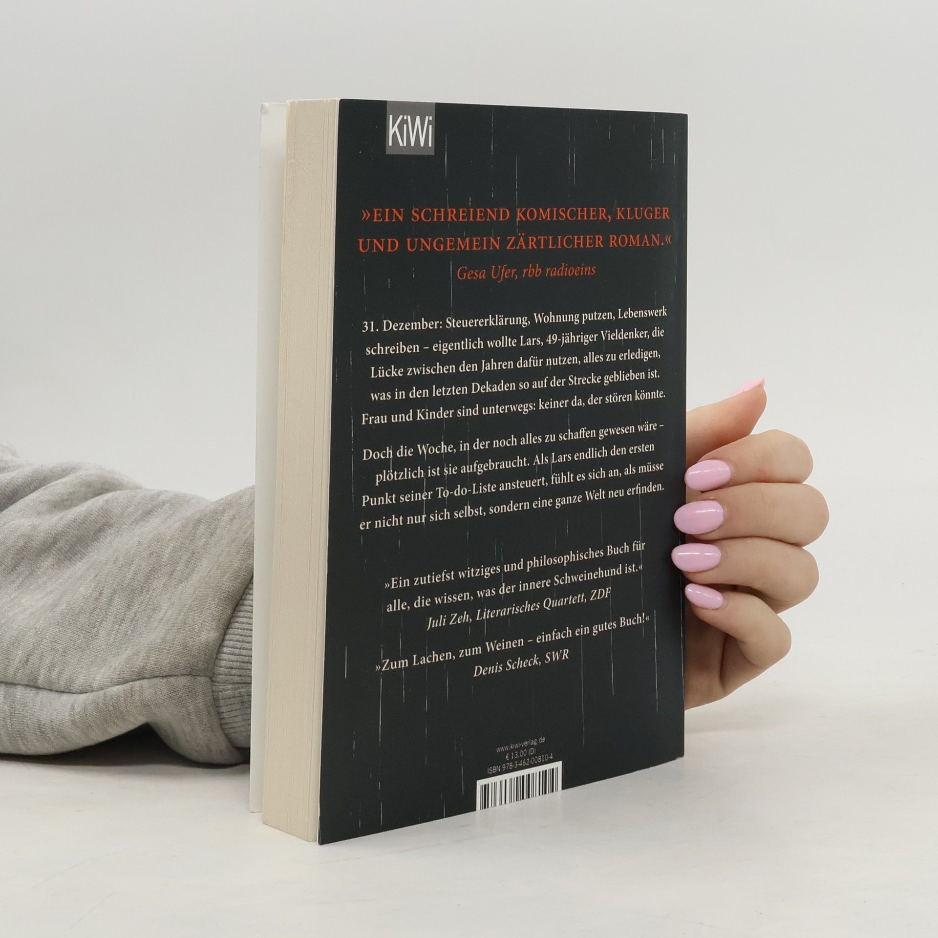 Ein tragikomischer Roman über unser Leben mit tausend unerledigten Dingen, die man später, also morgen, also eigentlich jetzt, noch schnell tun müsste. 31. Dezember. Steuererklärung, Wohnung putzen, Bett für die Tochter zusammenschrauben, Lebenswerk schreiben, mit dem Rauchen aufhören – eigentlich wollte Lars, neunundvierzigjähriger Vieldenker und angehender Schriftsteller, die Lücke zwischen den Jahren dafür nutzen, endlich alles zu erledigen, was in den letzten Dekaden so auf der Strecke geblieben ist. Das neue Jahr, so der Plan, soll in einem aufgeräumten Leben beginnen. Der Zeitpunkt dafür schien perfekt: Frau und Kinder sind unterwegs. Keiner da, der stören könnte. Doch die Woche, in der noch alles zu schaffen gewesen wäre – plötzlich ist sie aufgebraucht. Der letzte Tag des Jahres ist angebrochen, das Haus ist immer noch chaotisch. Als Lars den ersten Punkt seiner To-do-Liste ansteuert, fühlt es sich an, als müsse er nicht nur sich selbst, sondern eine ganze Welt neu erfinden.