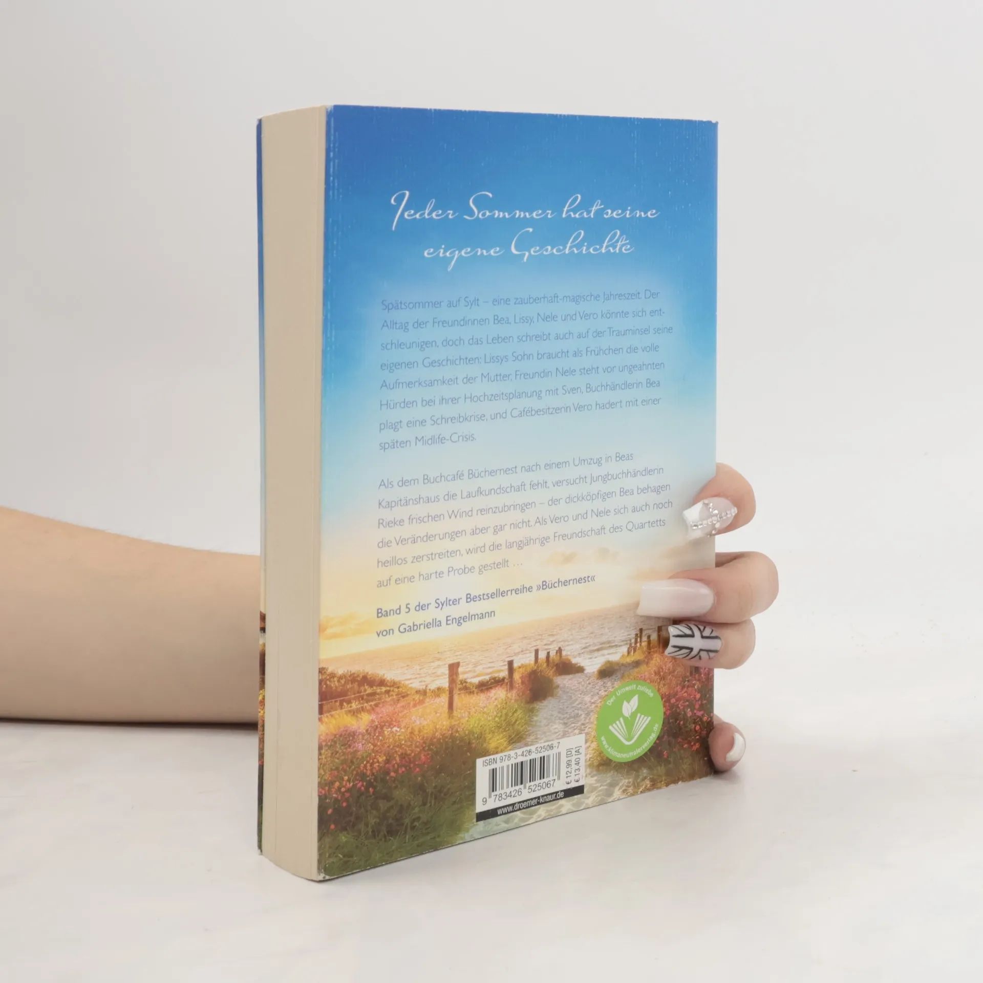 Das »Büchernest« auf Sylt hat wieder geöffnet: »Inselsehnsucht« ist der 5. Wohlfühlroman um vier Freundinnen und eine Buchhandlung auf Sylt von Bestseller-Autorin Gabriella Engelmann. Im Spätsommer auf Sylt tanzen sanfte Wattewolken am Himmel, und Heckenrosen leuchten. Der Alltag der Freundinnen Bea, Lissy, Nele und Vero könnte in dieser zauberhaften Jahreszeit entschleunigen, doch das Leben bringt Herausforderungen: Lissys Sohn Niels benötigt als Frühchen die volle Aufmerksamkeit seiner Mutter, Nele kämpft mit unerwarteten Hürden bei der Hochzeitsplanung mit Sven, Bea hat eine Schreibkrise, und Vero hadert mit einer späten Midlife-Crisis. Nach dem Umzug des Buchcafés »Büchernest« in Beas Kapitänshaus fehlt es an Laufkundschaft. Jungbuchhändlerin Rieke versucht, frischen Wind reinzubringen, was Bea gar nicht gefällt. Zudem zerstreiten sich Vero und Nele, was die langjährige Freundschaft des Quartetts auf eine harte Probe stellt. Gabriella Engelmann schafft mit ihren Inselromanen um das »Büchernest« ein kleines Wunder: kluge Unterhaltung, die das Herz berührt und zum Nachdenken anregt. Die Wohlfühlromane der »Büchernest-Serie« sind in folgender Reihenfolge erschienen: Inselzauber, Inselsommer, Wintersonnenglanz, Strandkorbträume, Inselsommerstürme (Kurzroman) und Inselsehnsucht.