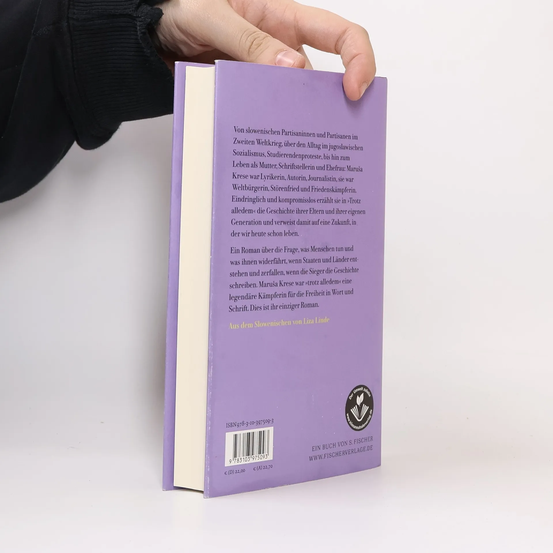 Von slowenischen Partisaninnen und Partisanen im Zweiten Weltkrieg, über den Alltag im jugoslawischen Sozialismus, Studierendenproteste, bis zum Leben als Mutter, Schriftstellerin und Ehefrau: Maruša Krese war Dichterin und Journalistin, sie war Weltbürgerin, Störenfried und Friedenskämpferin. Eindringlich und kompromisslos erzählt sie in ihrem Roman »Trotz alledem« die unmöglich lineare Geschichte ihrer Eltern und ihrer eigenen Generation und verweist auf eine Zukunft, in der wir heute schon leben. Ein Roman über die Frage, was Menschen tun und was ihnen widerfährt, wenn Staaten und Länder entstehen und zerfallen, wenn die Sieger die Geschichte schreiben. Maruša Krese war eine legendäre Kämpferin für die Freiheit in Wort und Schrift.