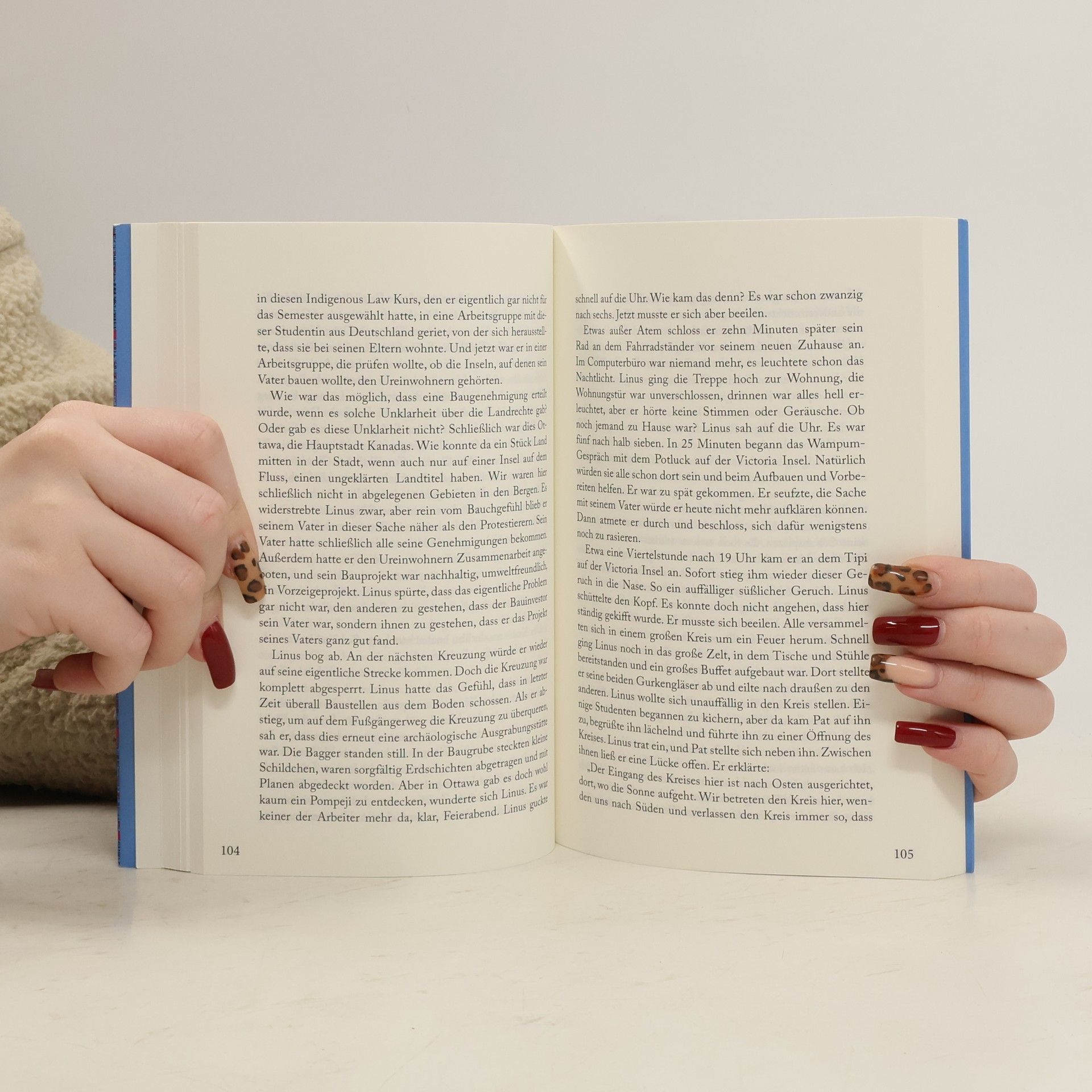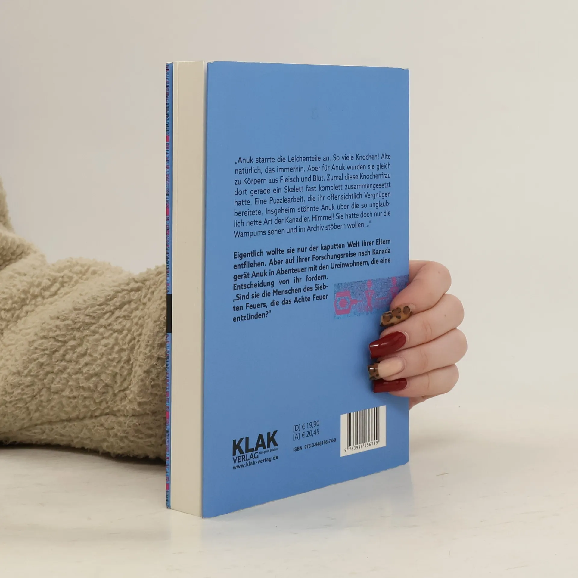 Anuk ist deutsch, kritisch, neugierig. In Kanada gerät sie in eine neue Welt. Gemeinsam mit der etwas verrückten Aktivisten-WG eines IT-Experten kämpft sie für eine Friedensvision. Ein Investor will auf heiligem Land der Ureinwohner ein schickes Projekt bauen und nutzt dafür ausgerechnet eine jahrhundertealte Prophezeiung. Ein Inuk-Mädchen wird vermisst, und auf einmal ist auch ein Freund aus der WG, der die Suche nach ihr anführt, verschwunden. Er ist Ureinwohner, Umweltschützer, und seine Spur führt zu dem von ihnen bekämpften Bauinvestor. Genau bei ihm hat Anuk für ihr Forschungsjahr in Kanada ein Zimmer bekommen. Immer tiefere Abgründe tun sich vor ihr auf … „Anuk starrte die Leichenteile an. So viele Knochen! Alte natürlich, das immerhin. Aber für Anuk wurden sie gleich zu Körpern aus Fleisch und Blut. Zumal diese Knochenfrau dort gerade ein Skelett fast komplett zusammengesetzt hatte. Eine Puzzlearbeit, die ihr offensichtlich Vergnügen bereitete. Insgeheim stöhnte Anuk über die so unglaublich nette Art der Kanadier. Himmel! Sie hatte doch nur die Wampums sehen und im Archiv stöbern wollen …“ Eigentlich wollte sie nur der kaputten Welt ihrer Eltern entfliehen. Aber auf ihrer Forschungsreise nach Kanada gerät Anuk in Abenteuer mit den Ureinwohnern, die eine Entscheidung von ihr fordern. „Sind sie die Menschen des Siebten Feuers, die das Achte Feuer entzünden?"