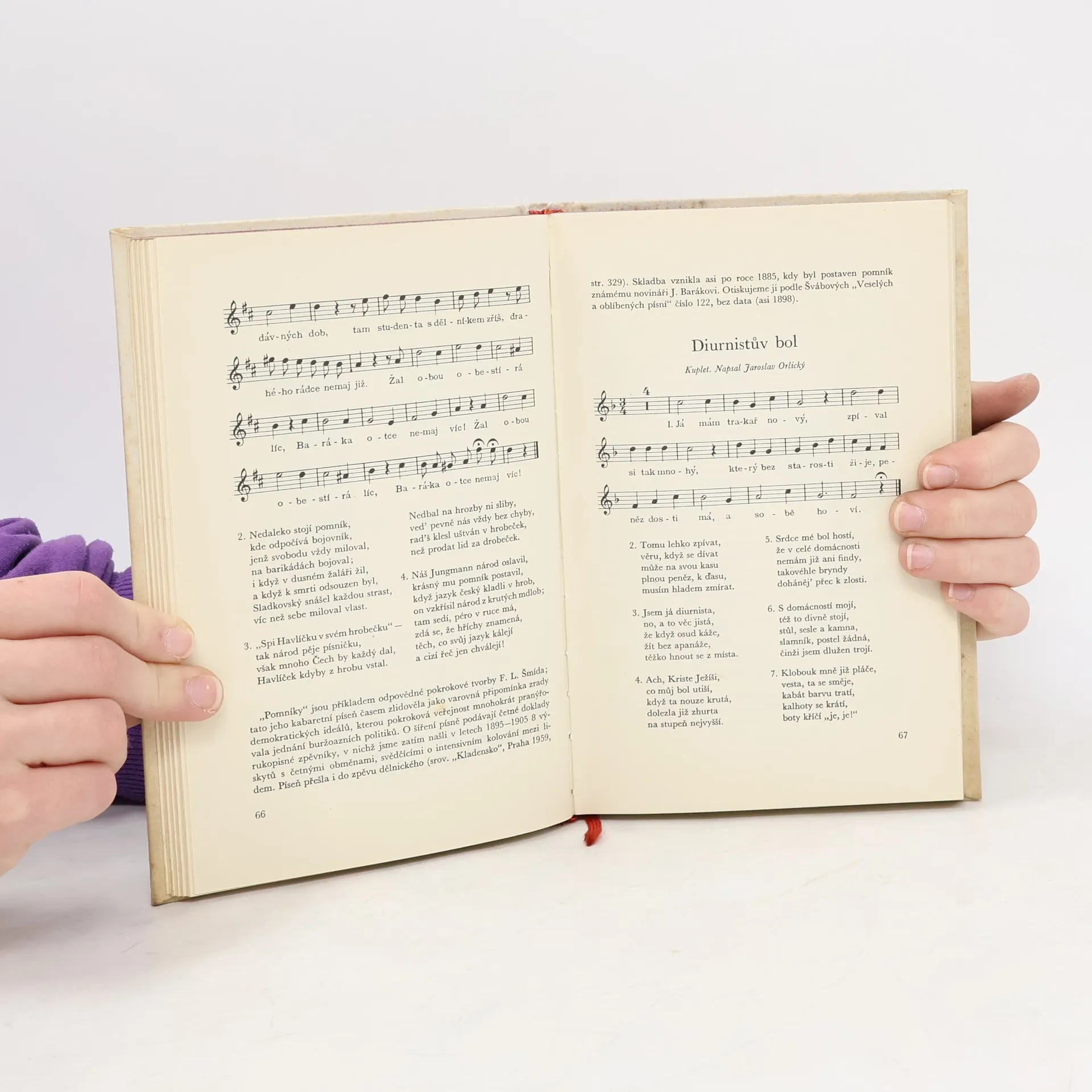 Několik desítek textů i melodií českých kabaretních písní, doprovázených vysvětlivkami o jejich autorech, vzniku, šíření, obměnách, uplatnění, dobovém významu atd. jsou nejenom ukázkami vývoje českého kupletu a kabaretu od prvních desetiletí minulého století do dvacátých let století našeho, nýbrž i zajímavým a průkazným svědectvím dobových poměrů i zápasů národních, politických, hospodářských a sociálních