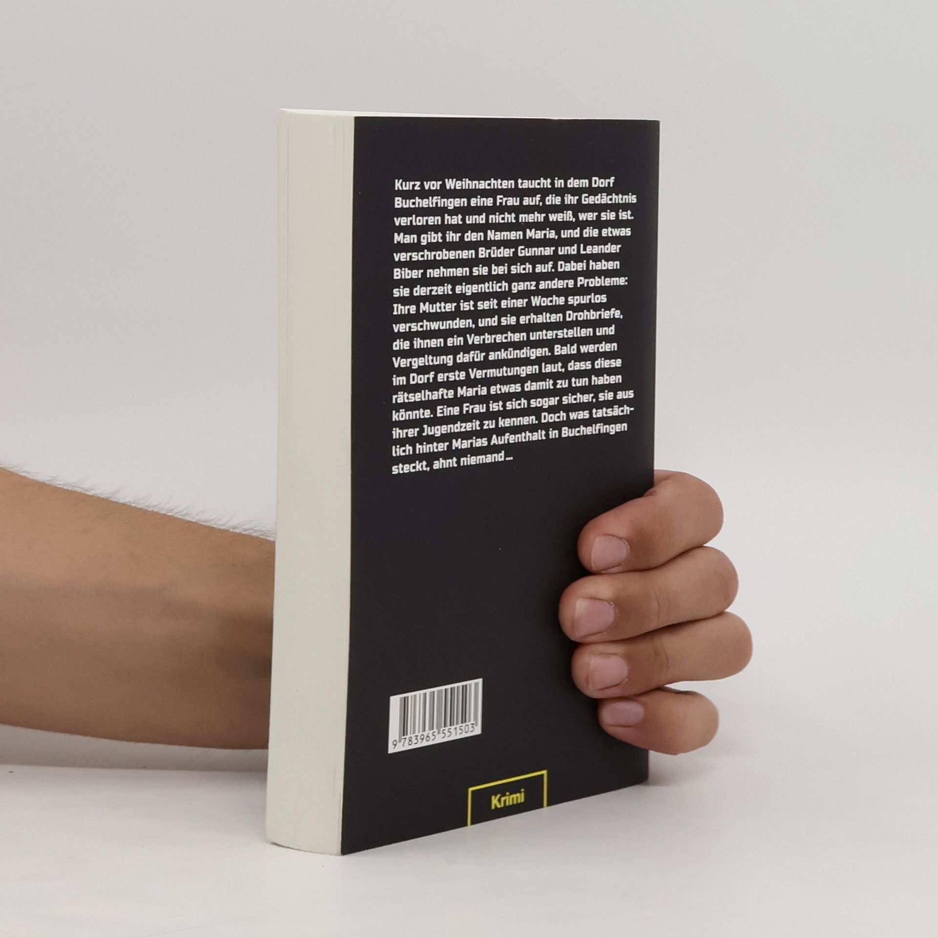 Kurz vor Weihnachten taucht in dem Dorf Buchelfingen eine Frau auf, die ihr Gedächtnis verloren hat und nicht mehr weiß, wer sie ist. Man gibt ihr den Namen Maria, und die etwas verschrobenen Brüder Gunnar und Leander Biber nehmen sie bei sich auf. Dabei haben sie derzeit eigentlich ganz andere Probleme: Ihre Mutter ist seit einer Woche spurlos verschwunden, und sie erhalten Drohbriefe, die ihnen ein Verbrechen unterstellen und Vergeltung dafür ankündigen. Bald werden im Dorf erste Vermutungen laut, dass diese rätselhafte Maria etwas damit zu tun haben könnte. Eine Frau ist sich sogar sicher, sie aus ihrer Jugendzeit zu kennen. Doch was tatsächlich hinter Marias Aufenthalt in Buchelfingen steckt, ahnt niemand.