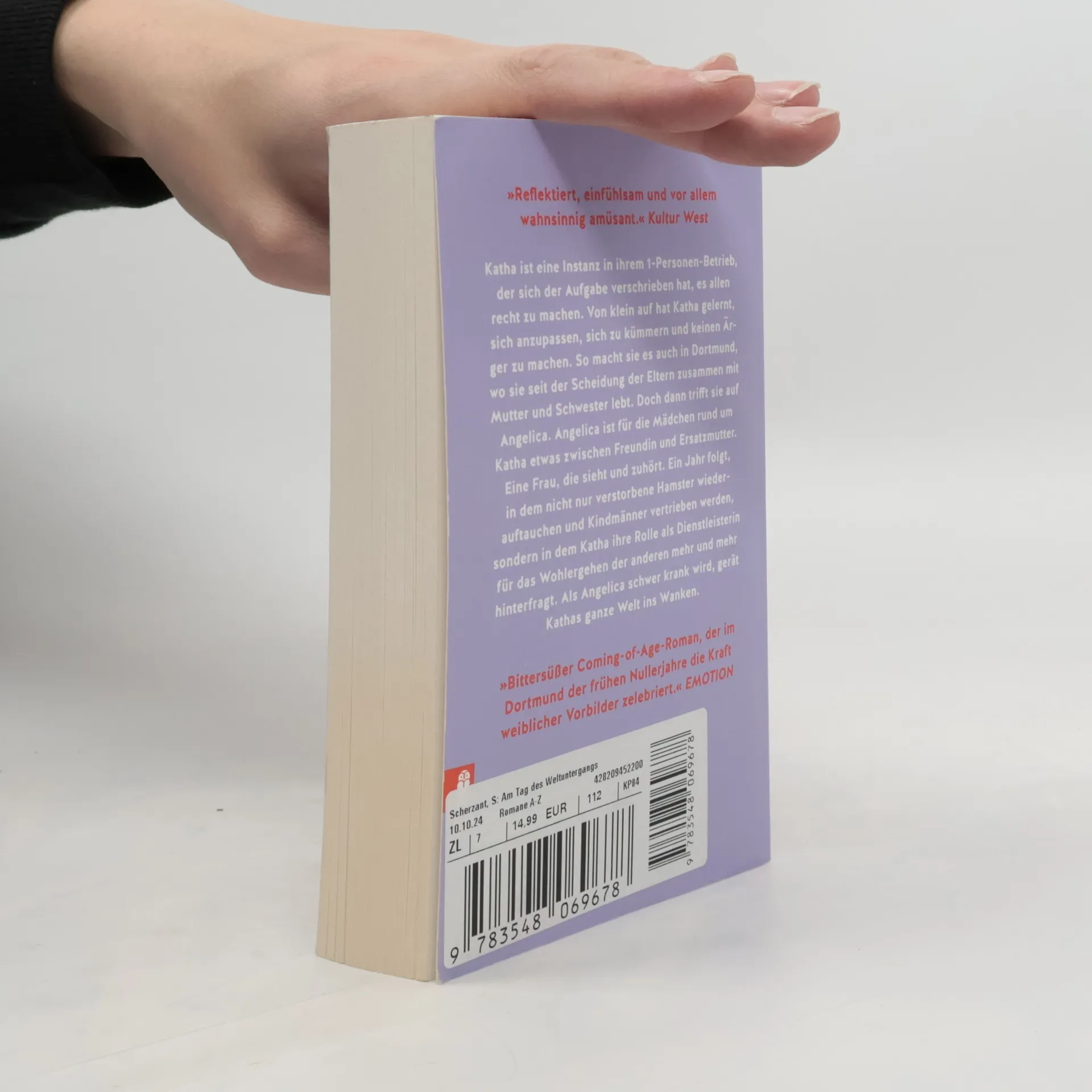 In "Am Tag des Weltuntergangs verschlang der Wolf die Sonne" folgt die Geschichte von Katha, die sich stets anpasst und für andere sorgt. Ihre Begegnung mit Angelica, einer wichtigen Bezugsperson, führt zu einer tiefen Selbstreflexion. Das Buch thematisiert Freundschaft, Verlust und die Bedeutung von zwischenmenschlichen Beziehungen.