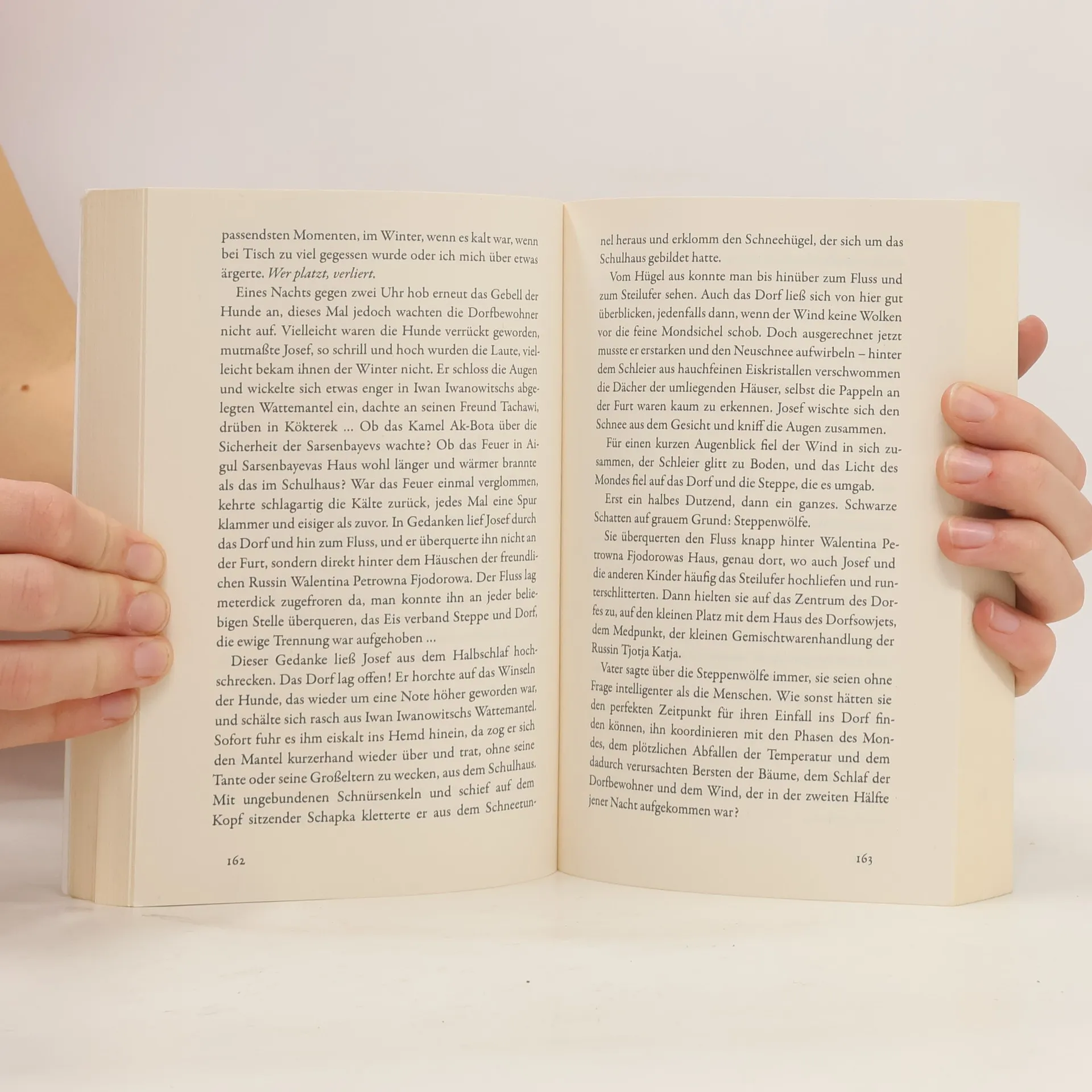 Sibirien. Für den zehnjährigen Josef Ambacher ein furchterregendes Wort, das die Erwachsenen für den fernen, fremden Osten verwenden. Dorthin werden 1945 Hunderttausende deutscher Zivilisten von der Sowjetarmee verschleppt. Als dieses Schicksal auch Josef trifft, findet er sich im fernen Kasachstan in einer harten, aber auch wundersamen, mythenvollen Welt wieder. Und er lernt, sich gegen die Steppe und ihre Vorspiegelungen zu behaupten. 45 Jahre später lebt Josef im niedersächsischen Mühlheide und ist Vater einer Tochter. Doch auch hier wird er mit seiner Vergangenheit konfrontiert, als nach dem Zusammenbruch der Sowjetunion eine Woge von Aussiedlern die niedersächsische Kleinstadt erreicht. Nun steht seine Tochter Leila zwischen den Welten und muss vermitteln – zu einem Zeitpunkt, an dem sie selbst erst beginnt, den Spuk der Geschichte zu begreifen.