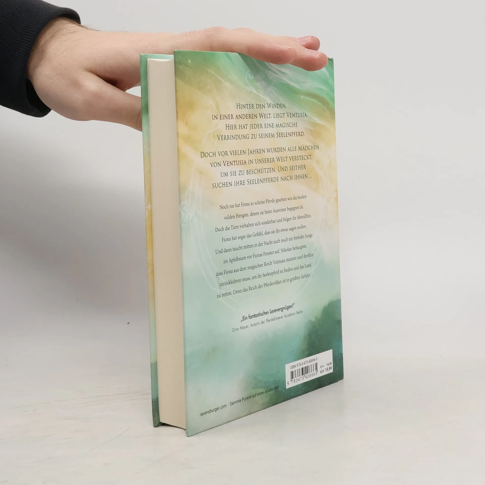 Hinter den Winden, in einer anderen Welt, liegt Ventusia. Hier hat jeder eine magische Verbindung zu seinem Seelenpferd. Doch vor vielen Jahren wurden alle Mädchen von Ventusia in unserer Welt versteckt, um sie zu beschützen. Und seither suchen ihre Seelenpferde nach ihnen … Noch nie hat Fiona so schöne Pferde gesehen wie die beiden wilden Hengste, denen sie beim Ausreiten begegnet ist. Doch die Tiere verhalten sich sonderbar und folgen ihr überallhin. Fiona hat sogar das Gefühl, dass sie ihr etwas sagen wollen. Und dann taucht mitten in der Nacht auch noch ein fremder Junge im Apfelbaum vor Fionas Fenster auf. Nikolan behauptet, dass sie aus dem magischen Reich Ventusia stammt und dorthin zurückkehren muss, um ihr Seelenpferd zu finden und das Land zu retten. Denn das Reich der Pferdevölker ist in größter Gefahr … Die abenteuerliche Pferde-Fantasy-Reihe von Dein-SPIEGEL-Bestsellerautorin Jennifer Benkau "Ein fantastisches Lesevergnügen!“ Gina Mayer, Autorin der „Pferdeflüsterer Academy“-Reihe Entdecke die komplette Reihe: Band 1: Windprinzessin Band 2: Wüstentochter Band 3: Sturmmädchen Band 4: Himmelskind