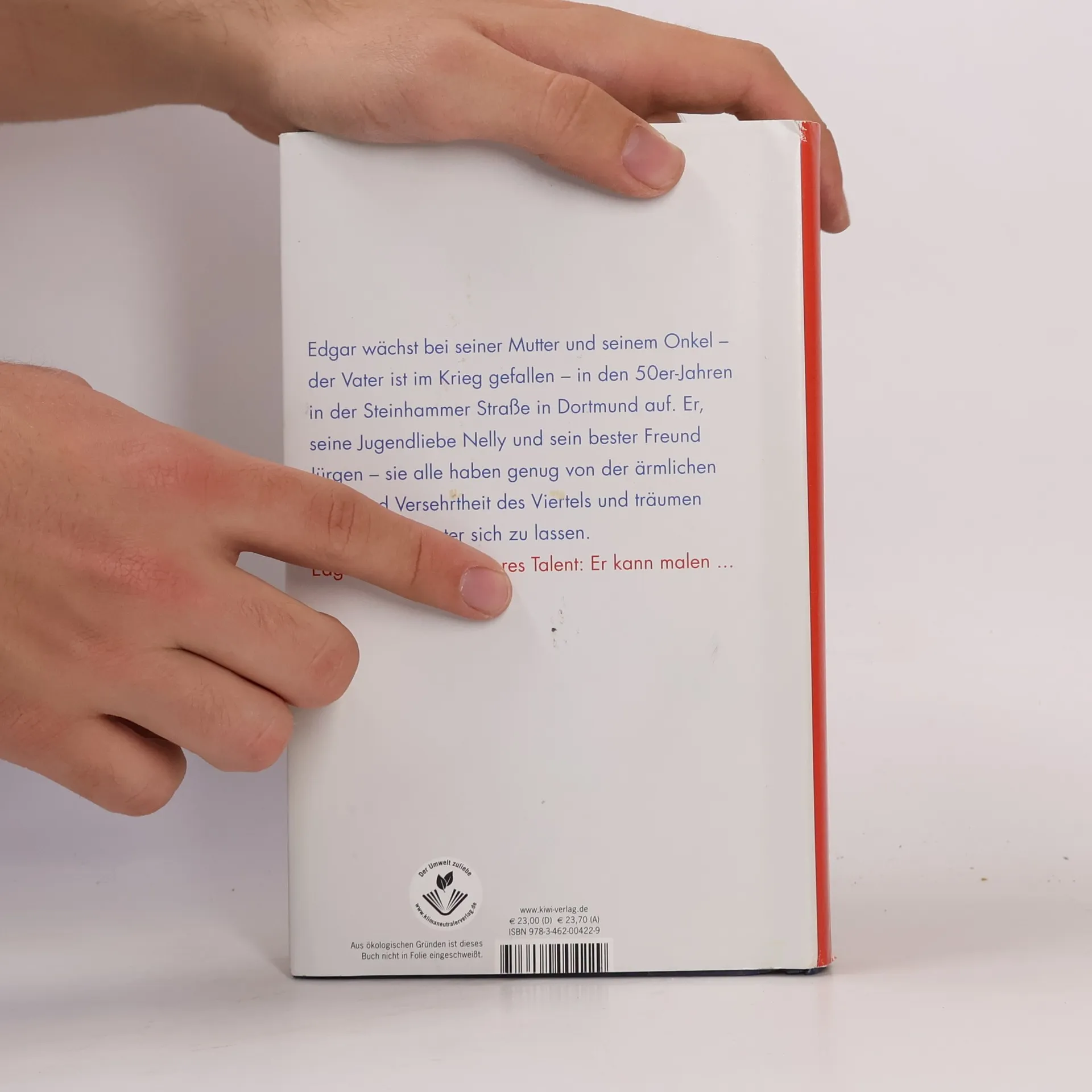 Dortmund-Lütgendortmund in der Nachkriegszeit, das bedeutet Armut, Kriegstraumata und wenig Hoffnung auf eine rosige Zukunft. Doch drei Jugendliche kämpfen um einen besseren Platz im Leben. Edgar wächst bei seiner Mutter und seinem Onkel – der Vater ist im Krieg gefallen – in den 50er-Jahren in der Steinhammer Straße in Dortmund auf. Er soll später den Friseurladen übernehmen oder bei schlechtem Betragen zur Strafe auf den Pütt. Er, seine Jugendliebe Nelly und sein bester Freund Jürgen – sie alle haben genug von der ärmlichen Enge und Versehrtheit des Viertels und träumen davon, alles hinter sich zu lassen. Als Edgar die Möglichkeit bekommt, Schaufensterdekorateur zu lernen, und Förderer findet, öffnet sich die Tür zur Düsseldorfer Künstlerszene. Doch Edgar ist anders als die Sprösslinge reicher Familien und eckt mit seiner unkontrollierten Art immer wieder an. Der Roman lehnt sich an an das Leben des Malers Norbert Tadeusz, der es zum Meisterschüler Beuys’ und zum Kunstprofessor brachte. Jörg Thadeusz schreibt in diesem authentischen Roman über einen Aufsteiger, der mit seiner Herkunft bricht und sie doch nie ganz loswird.