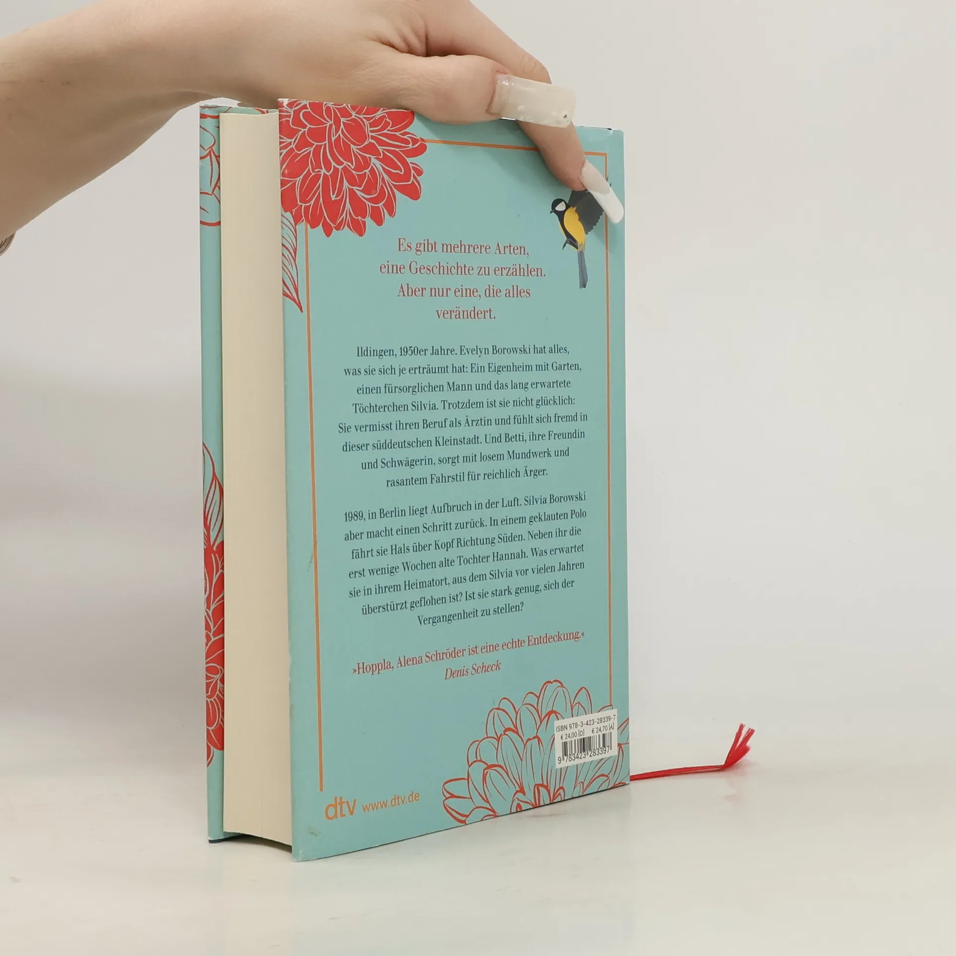Es gibt mehrere Arten, eine Geschichte zu erzählen. Aber nur eine, die alles verändert. Ildingen, 1950er Jahre: Evelyn Borowski hat ein Eigenheim, einen fürsorglichen Mann und die lang ersehnte Tochter Silvia, doch sie ist unglücklich und vermisst ihren Beruf als Ärztin. Ihre Freundin und Schwägerin Betti, unverheiratet und um die Eltern kümmernd, sorgt mit ihrem unkonventionellen Wesen für Aufregung. Der Familienroman spannt einen Bogen von der Nachkriegszeit bis zur Wende. 1989 in Berlin liegt Aufbruch in der Luft, während Silvia Borowski Hals über Kopf mit ihrer wenigen Wochen alten Tochter Hannah in einem gestohlenen Polo in den Süden fährt. Was erwartet sie in ihrem Heimatort, aus dem sie einst flüchtete? Ist sie stark genug, sich ihrer Vergangenheit zu stellen? Die berührende Mutter-Tochter-Geschichte thematisiert jahrzehntelanges Schweigen und den Mut, es zu brechen. Am Familiengrab der Borowskis wird Silvia bewusst, dass ein Stein fehlt, der eine nie gestellte Frage beantworten könnte. Alena Schröder zeigt, dass sowohl Aufbruch als auch Heimkehr Mut erfordern und erzählt, was in ihrem Bestseller im Dunkeln blieb. Die dichte, emotionale Geschichte regt zum Nachdenken an und beleuchtet, wie Frauen aller Generationen mit dem Muttersein hadern.
