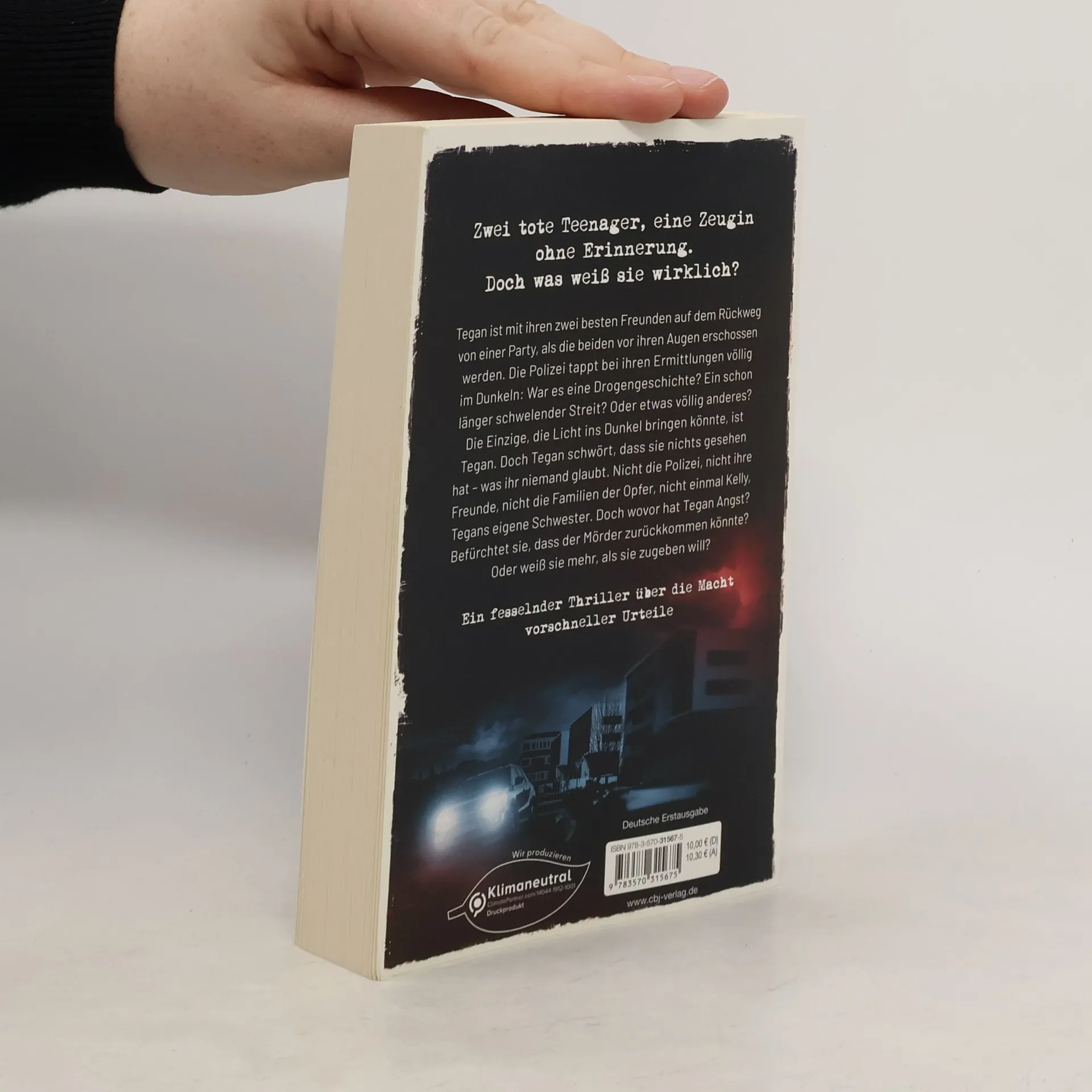 »Ich weiß«, sagte er, und es klang wie: Ich weiß, dass du das behauptest, aber ich glaube dir nicht. Tegan ist mit ihren besten Freunden auf dem Rückweg von einer Party, als die beiden vor ihren Augen erschossen werden. Die Polizei tappt bei ihren Ermittlungen völlig im Dunkeln: War es eine Drogengeschichte? Ein schon länger schwelender Streit? Oder etwas völlig anderes? Die Einzige, die Licht ins Dunkel bringen könnte, ist Tegan. Doch Tegan schwört, dass sie nichts gesehen hat – was ihr niemand glaubt. Nicht die Polizei, nicht ihre Freunde, nicht die Familien der Opfer, nicht einmal Kelly, Tegans eigene Schwester. Doch wovor hat Tegan Angst? Befürchtet sie, dass der Mörder zurückkommen könnte? Oder weiß sie mehr, als sie zugeben will?