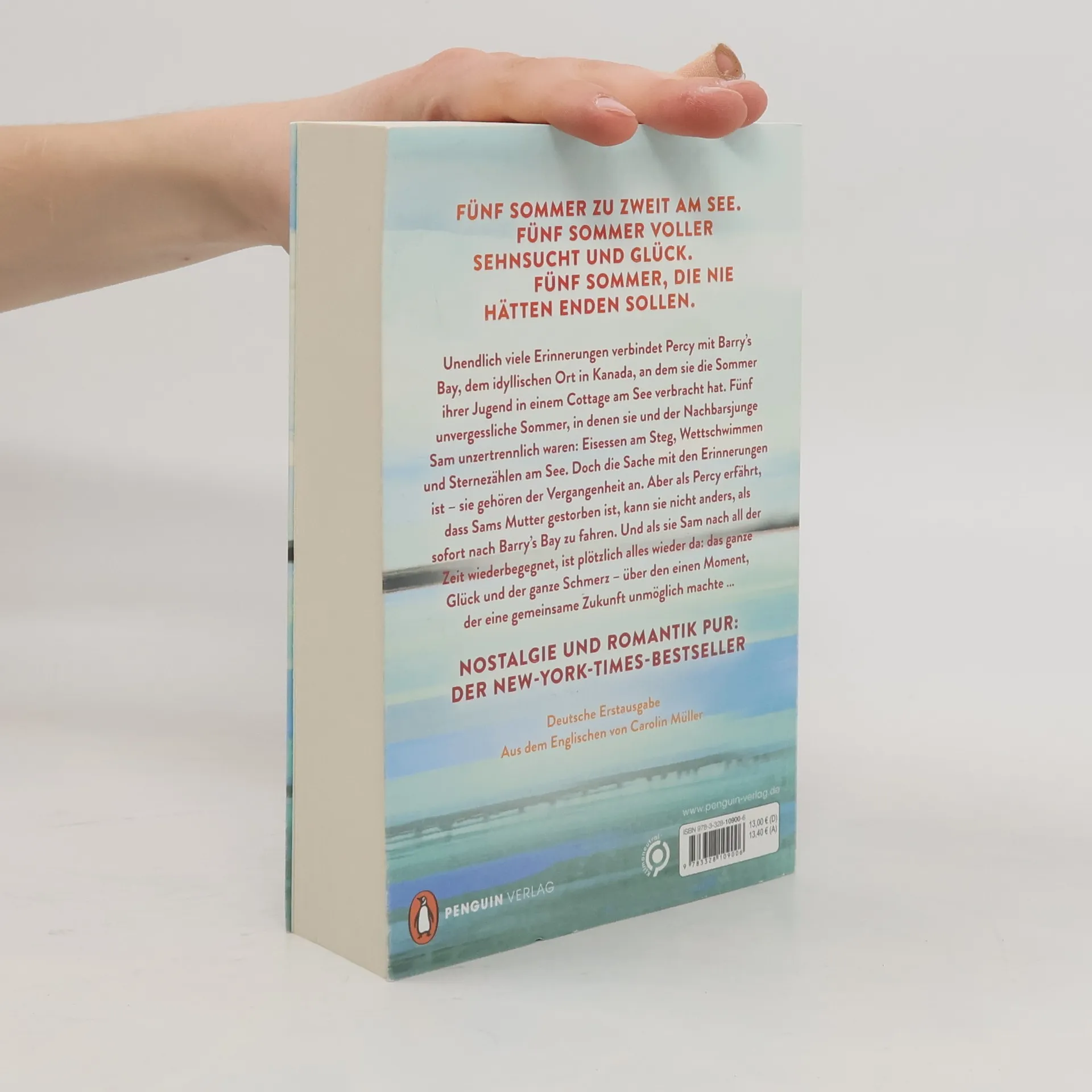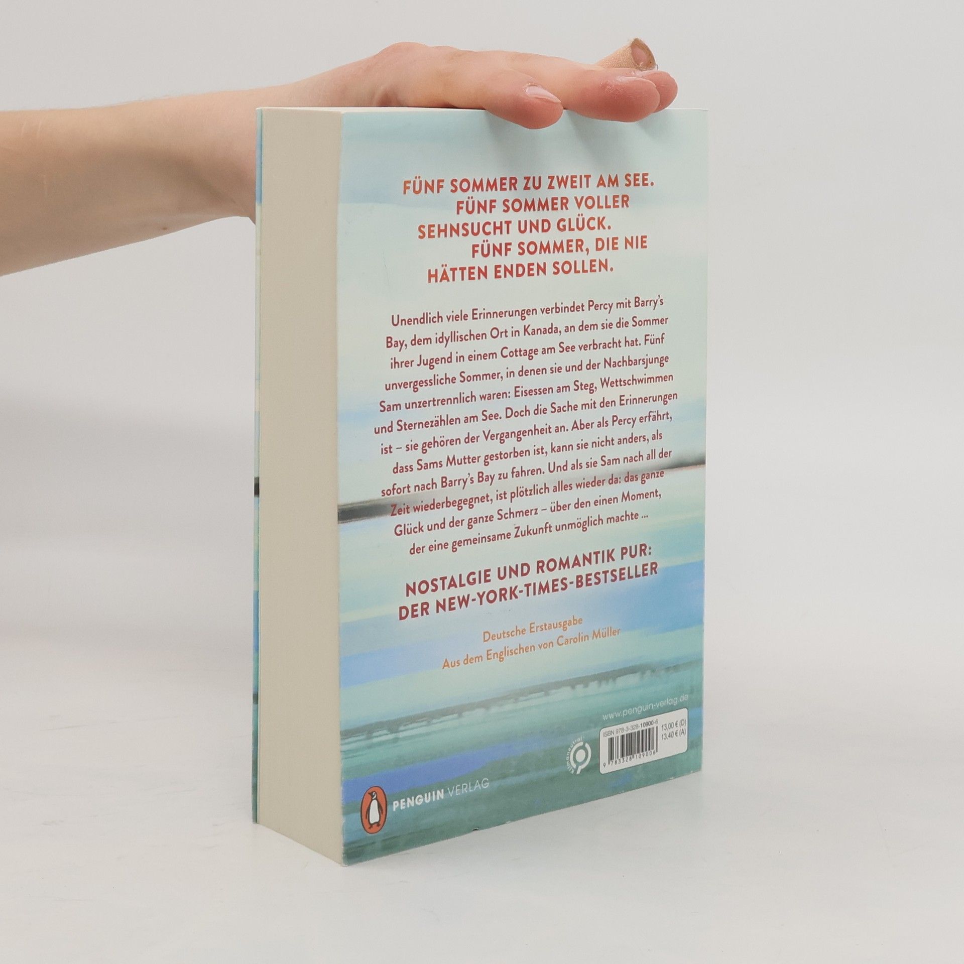 Fünf Sommer zu zweit am See. Fünf Sommer voller Sehnsucht und Glück. Fünf Sommer, die nie hätten enden sollen. Eine unwiderstehliche Friends-to-Lovers-Liebesgeschichte an einem funkelnden kanadischen See – der große New-York-Times-Bestseller! Unendlich viele Erinnerungen verbindet Percy mit Barry’s Bay, dem idyllischen Ort in Kanada, an dem sie die Sommer ihrer Jugend in einem Cottage am See verbracht hat. Fünf unvergessliche Sommer, in denen sie und der Nachbarsjunge Sam unzertrennlich waren: Eisessen am Steg, Wettschwimmen und Sternezählen am See. Doch die Sache mit den Erinnerungen ist – sie gehören der Vergangenheit an. Aber als Percy erfährt, dass Sams Mutter gestorben ist, kann sie nicht anders, als sofort nach Barry’s Bay zu fahren. Und als sie Sam nach all der Zeit wiederbegegnet, ist plötzlich alles wieder da: das ganze Glück und der ganze Schmerz – über den einen Moment, der eine gemeinsame Zukunft unmöglich machte …»Ein Debüt voller Nostalgie und Herz. So wie wir uns an unvergessliche Sommer erinnern, bleibt auch diese Liebesgeschichte weit über die Lektüre hinaus im Herzen.« USA Today